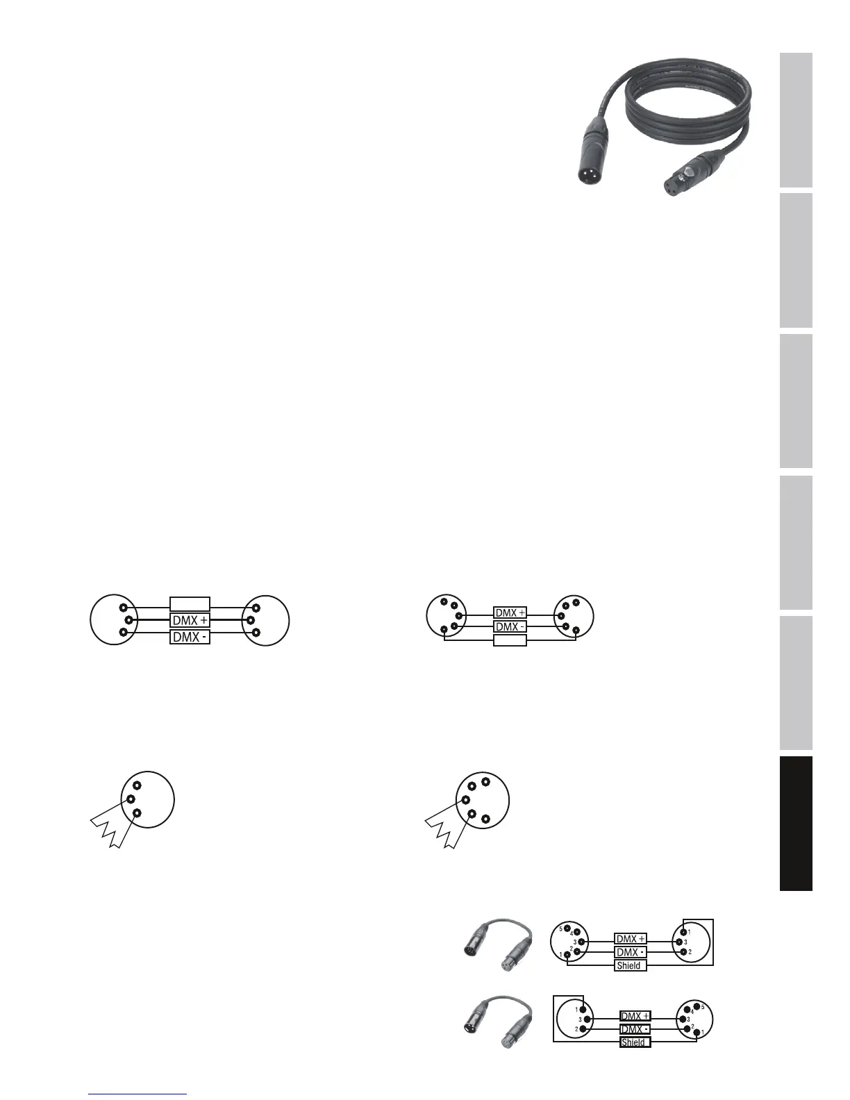 Cavo DMX con connettori XLR a 3poli: Cavo DMX con connettori XLR a 5poli (pin4 e 5 non assegnati):