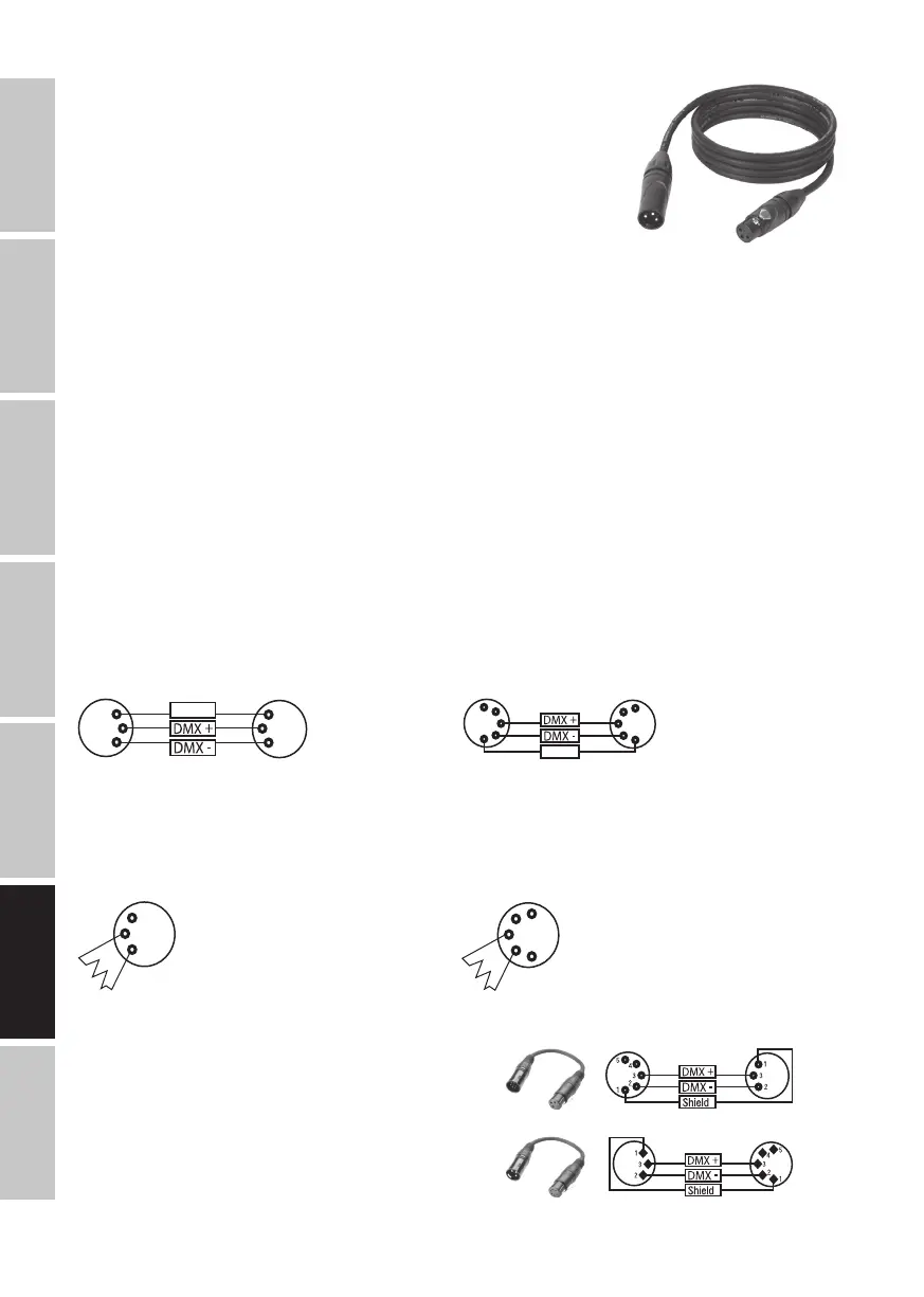 Cavo DMX con connettori XLR a 3poli: Cavo DMX con connettori XLR a 5poli (pin4 e 5 non assegnati):