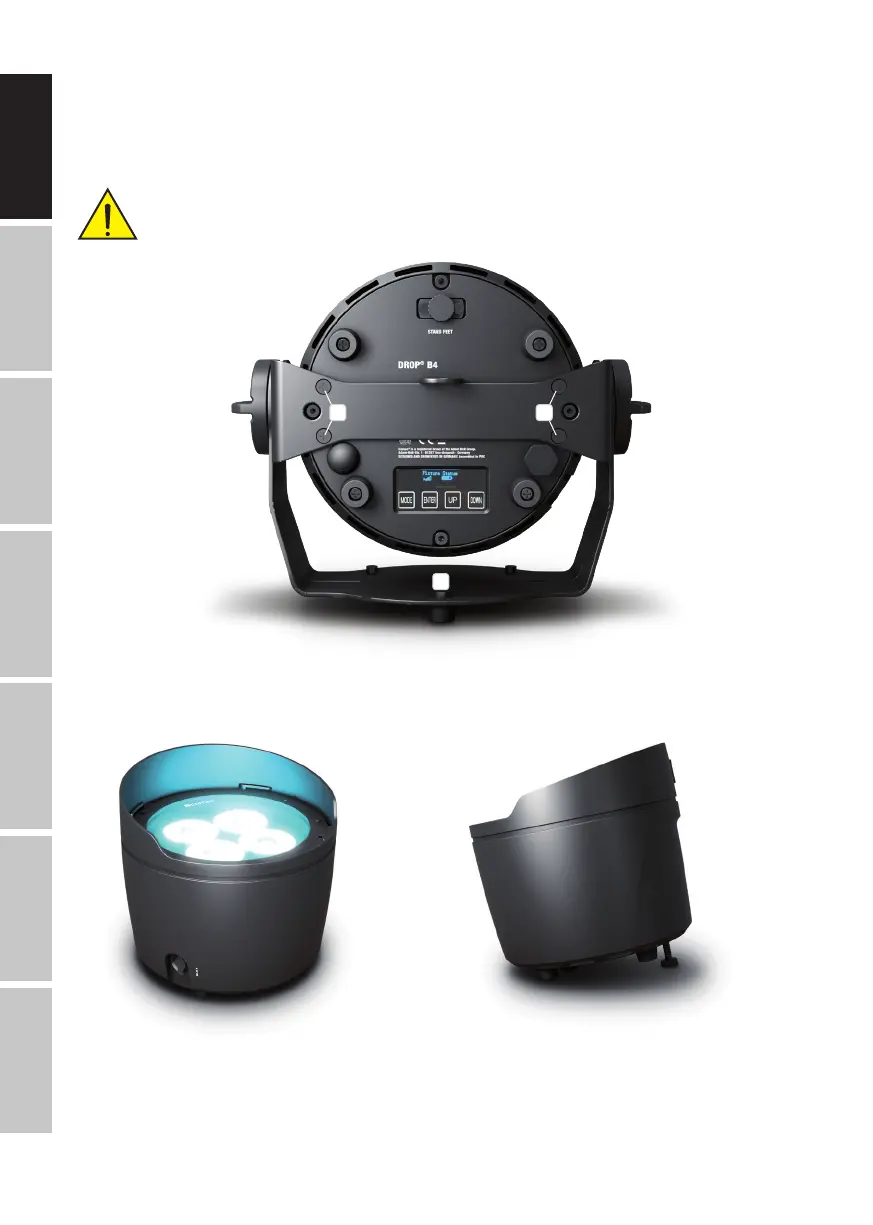 installing on a truss, ensure that the mounting bracket is securely attached to the spotlight housing with the four T20 Torx screws (B).