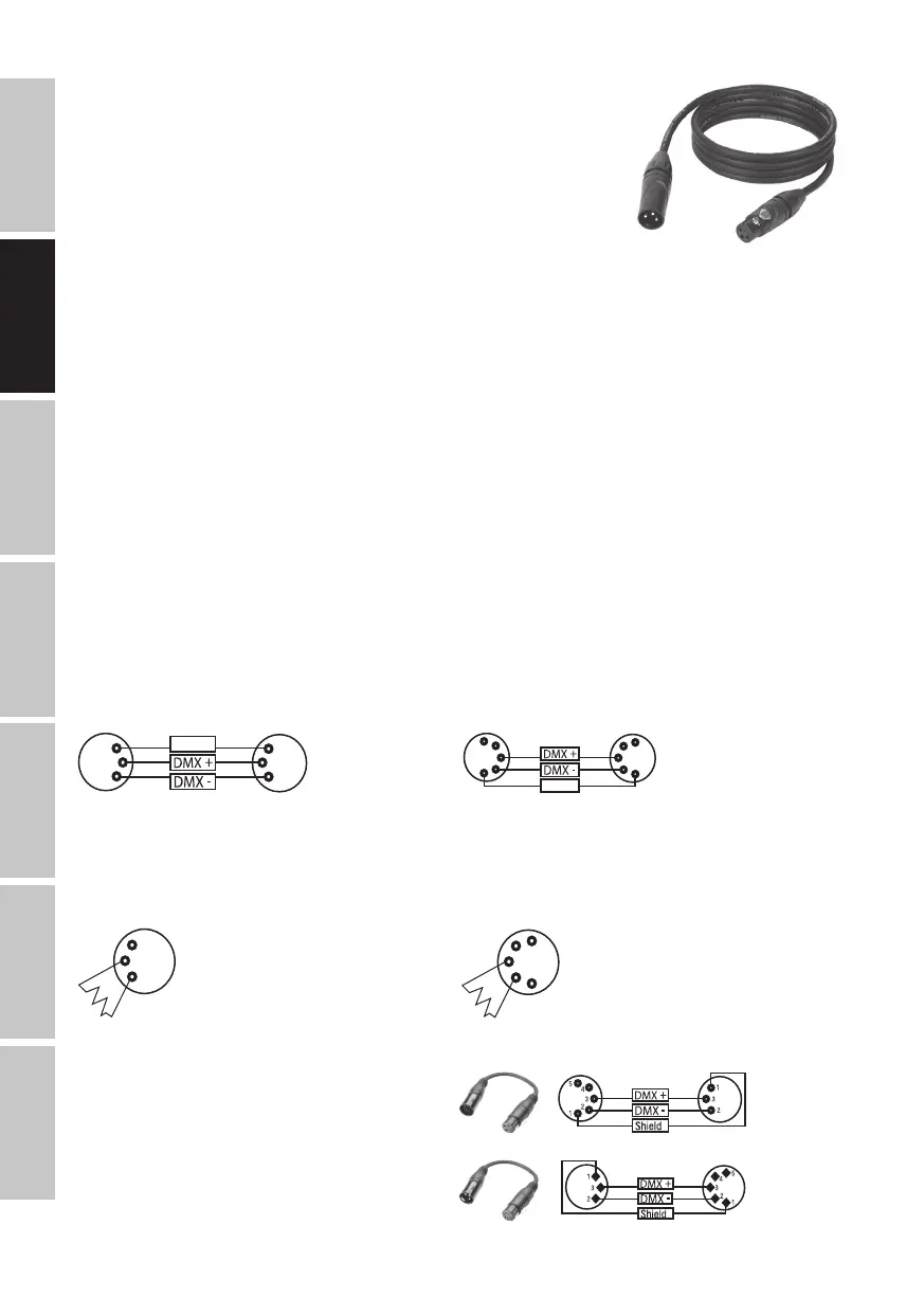 DMX-Kabel mit 3-Pol XLR-Steckern: DMX-Kabel mit 5-Pol XLR-Steckern (Pin 4 und 5 sind nicht belegt.):