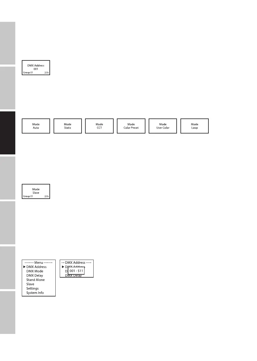 tionner l’option de menu DMX Address et confirmer avec ENTER. Il est maintenant possible de