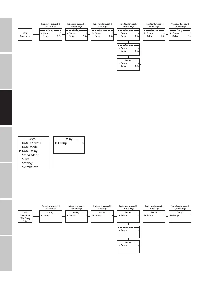 et , sélectionnez l’option de menu DMX Delay , puis appuyez deux fois sur ENTER pour