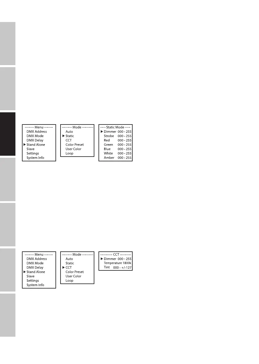 confirmer. Sélectionner le mode Stand Alone Static de nouveau avec les touches UP et DOWN