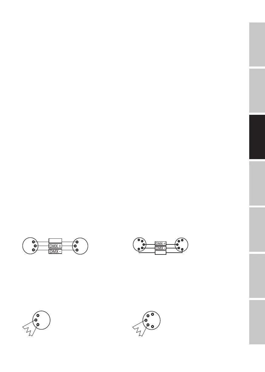 Si vous fabriquez vous-mêmes vos câbles, respectez les modalités de câblage DMX. En particulier