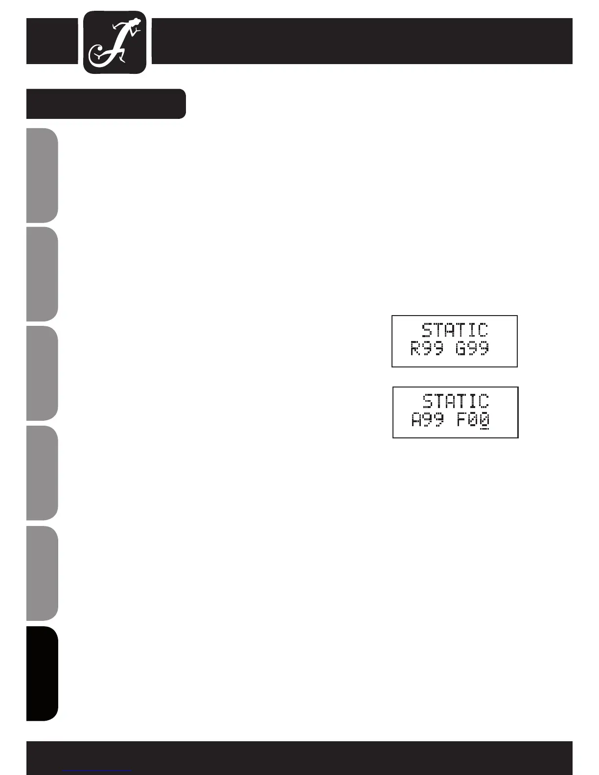 "STATIC". Premendo più volte il tasto ENTER, selezionare il gruppo di LED di cui