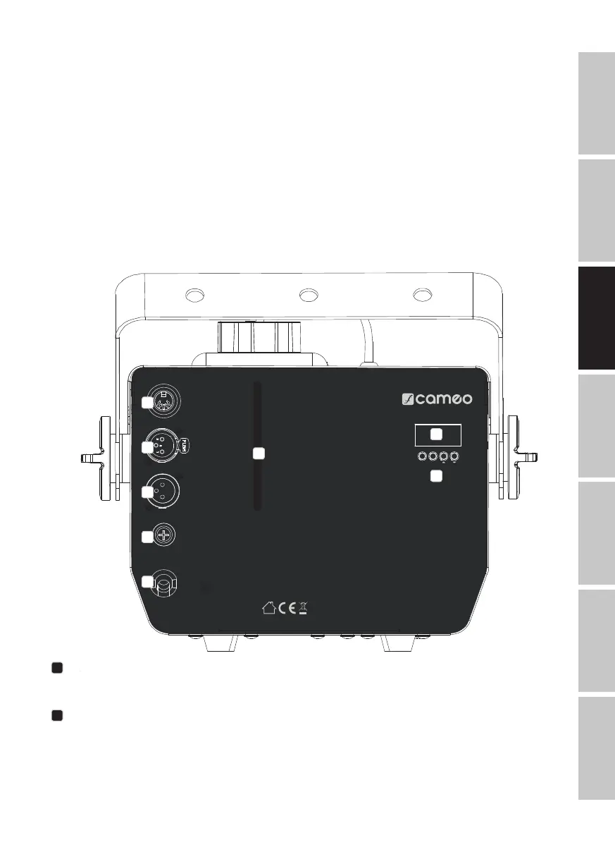 Machine à brouillard compacte pour liquide fumigène à base d'eau. Pilotage en mode DMX. Télécommande filaire incluse.