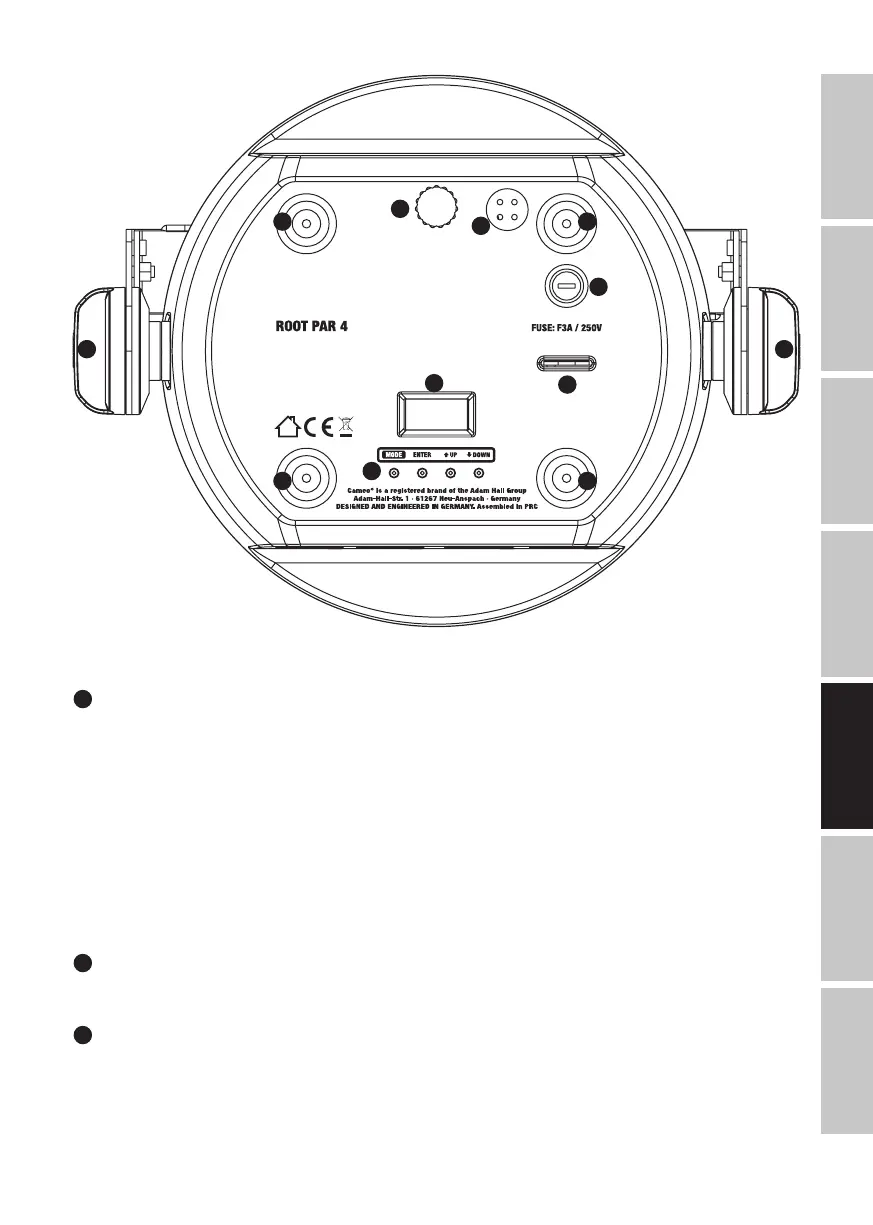 UP i DOWN — Wybór poszczególnych pozycji w menu wyboru (adres DMX, tryb pracy itp.) oraz w