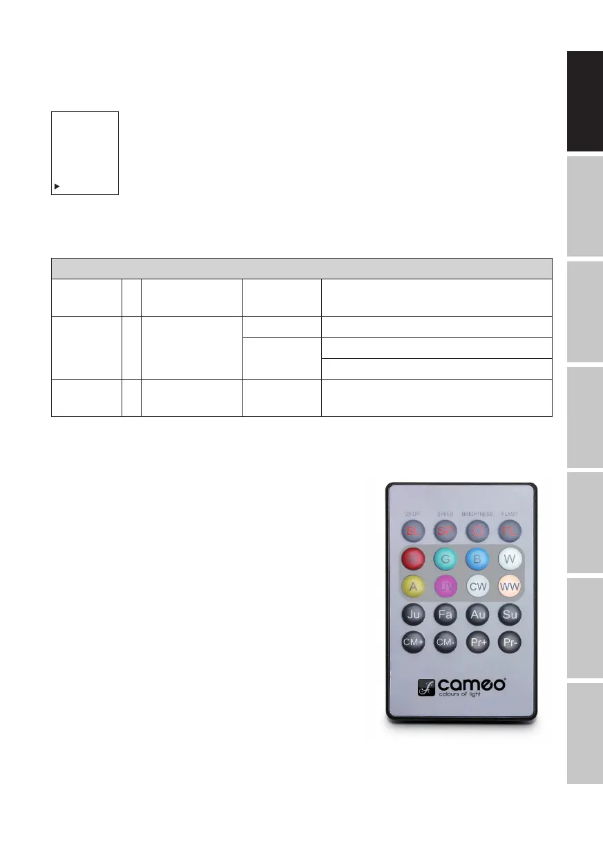 Color Jumping (Ju), Color Fading (Fa) and Auto Programme