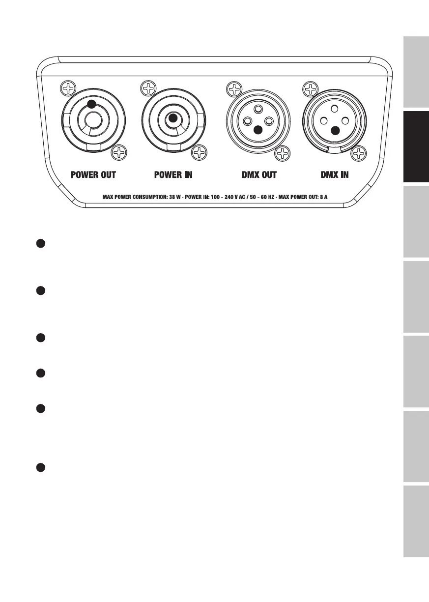 Weibliche 3-Pol XLR-Buchse zum Weiterleiten des DMX-Steuersignals.
