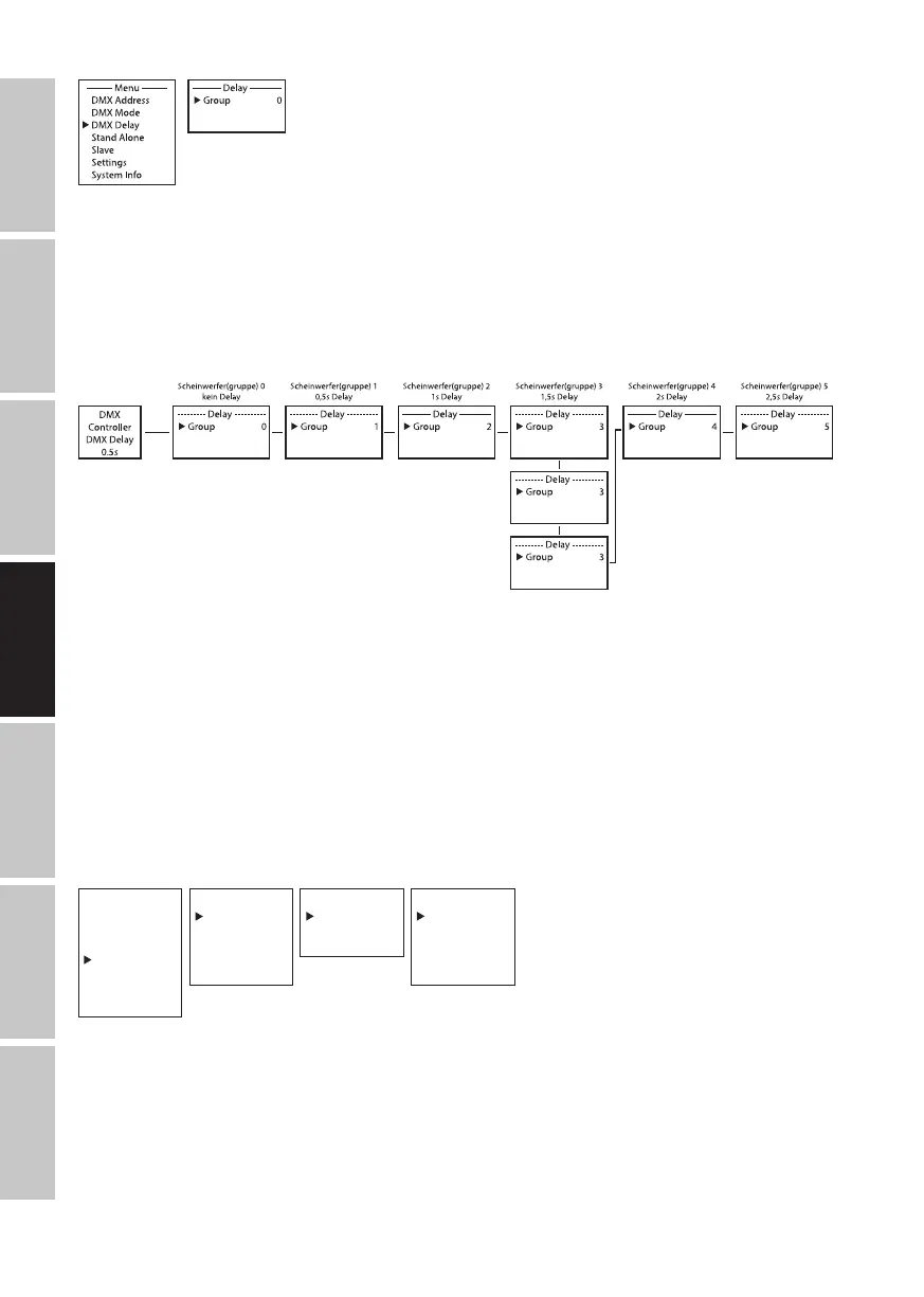 en el canal DMX Delay individual del modo operativo DMX correspondiente (de 0,0s a 2,0s en