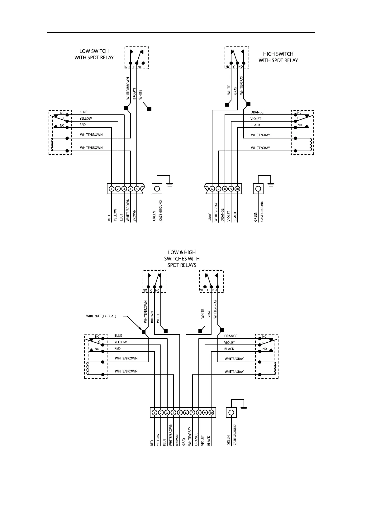 Figure 2.5—Low/high switch(es) w/SPDT relay(s) diagrams