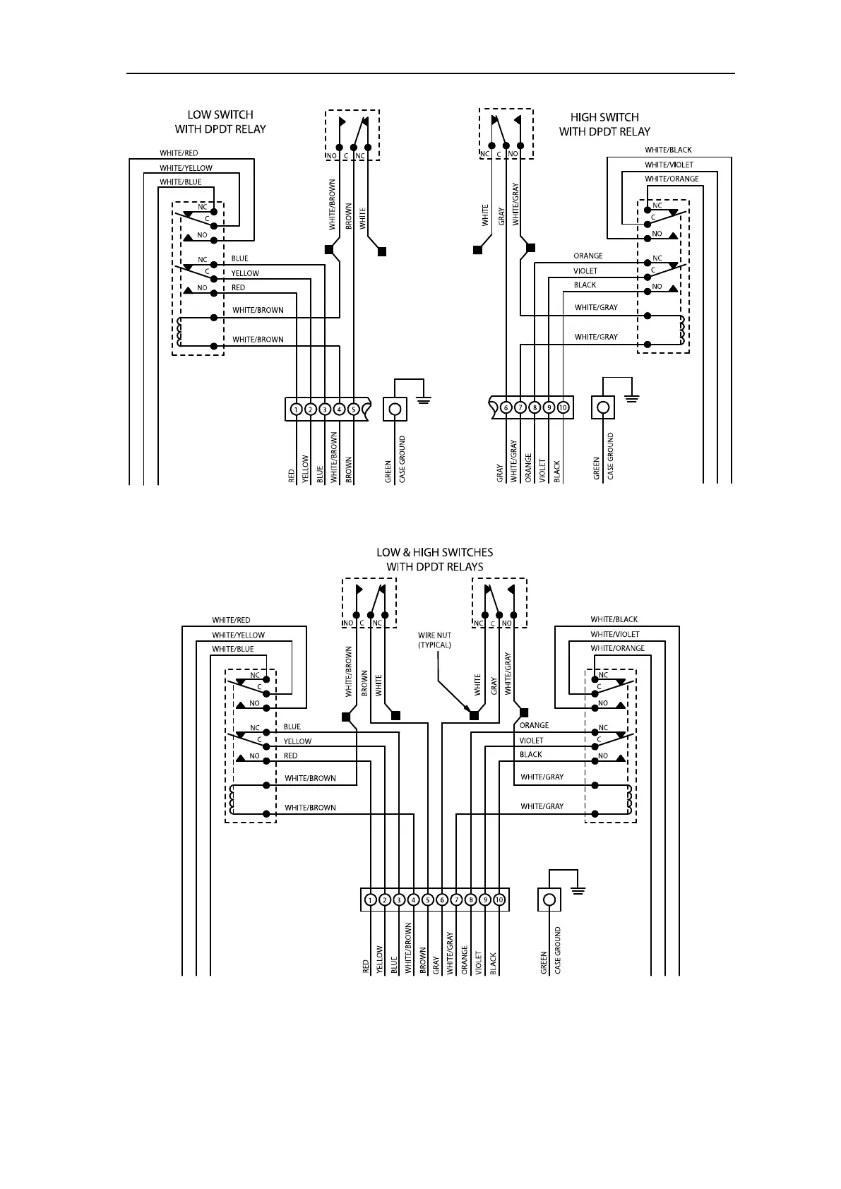 Figure 2.6—Low/high switch(es) w/DPDT relay(s) diagrams