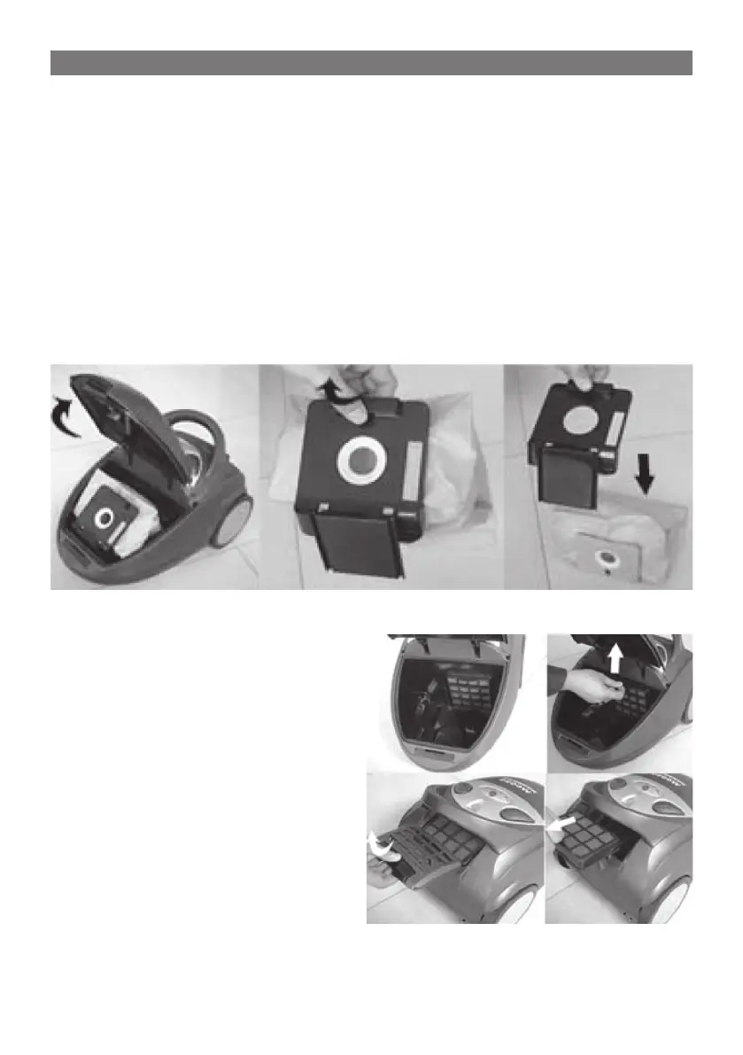 Откройте крышку отсека, в котором находится мешок, и потяните