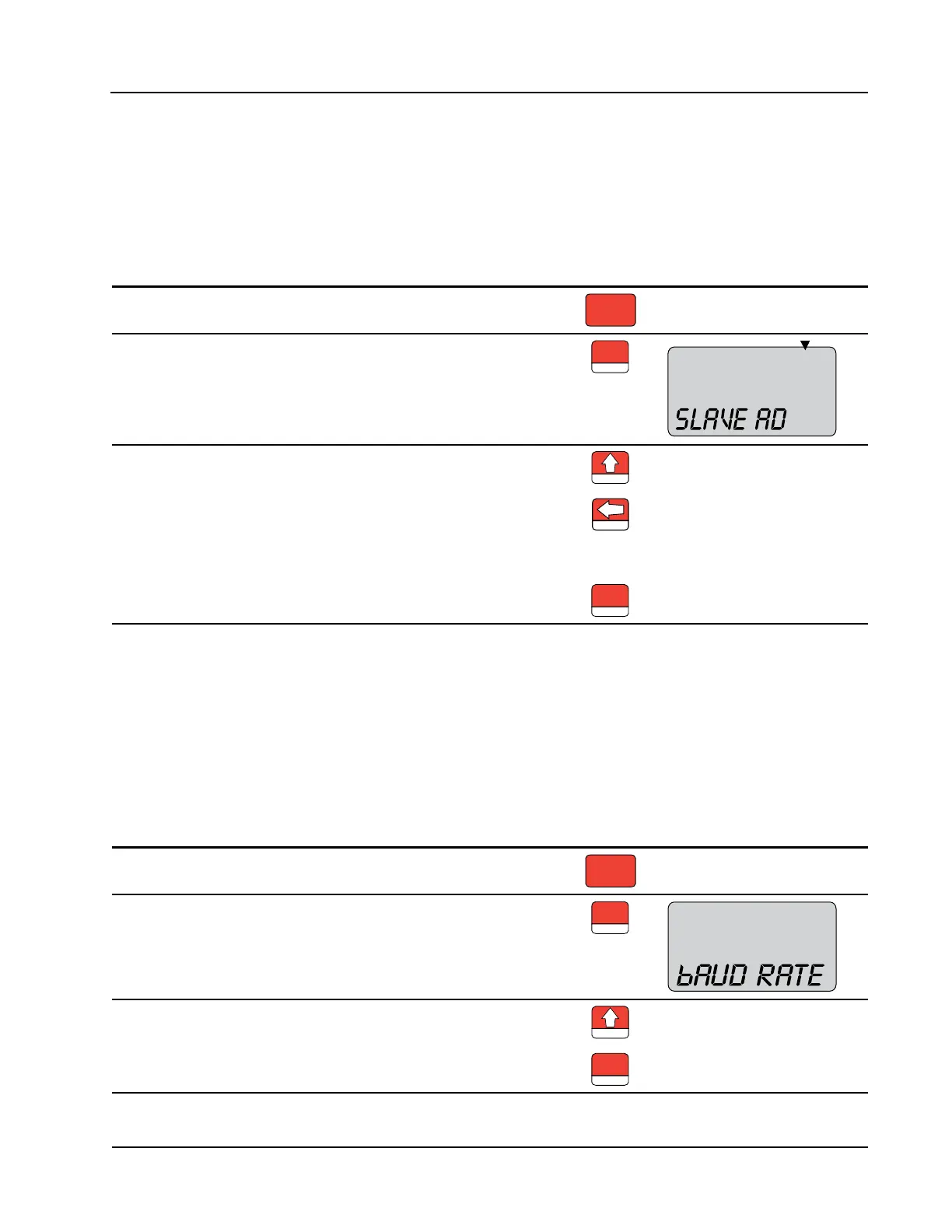 The Baud Rate menu prompt will appear immediately following the entry of the slave address. See Entering