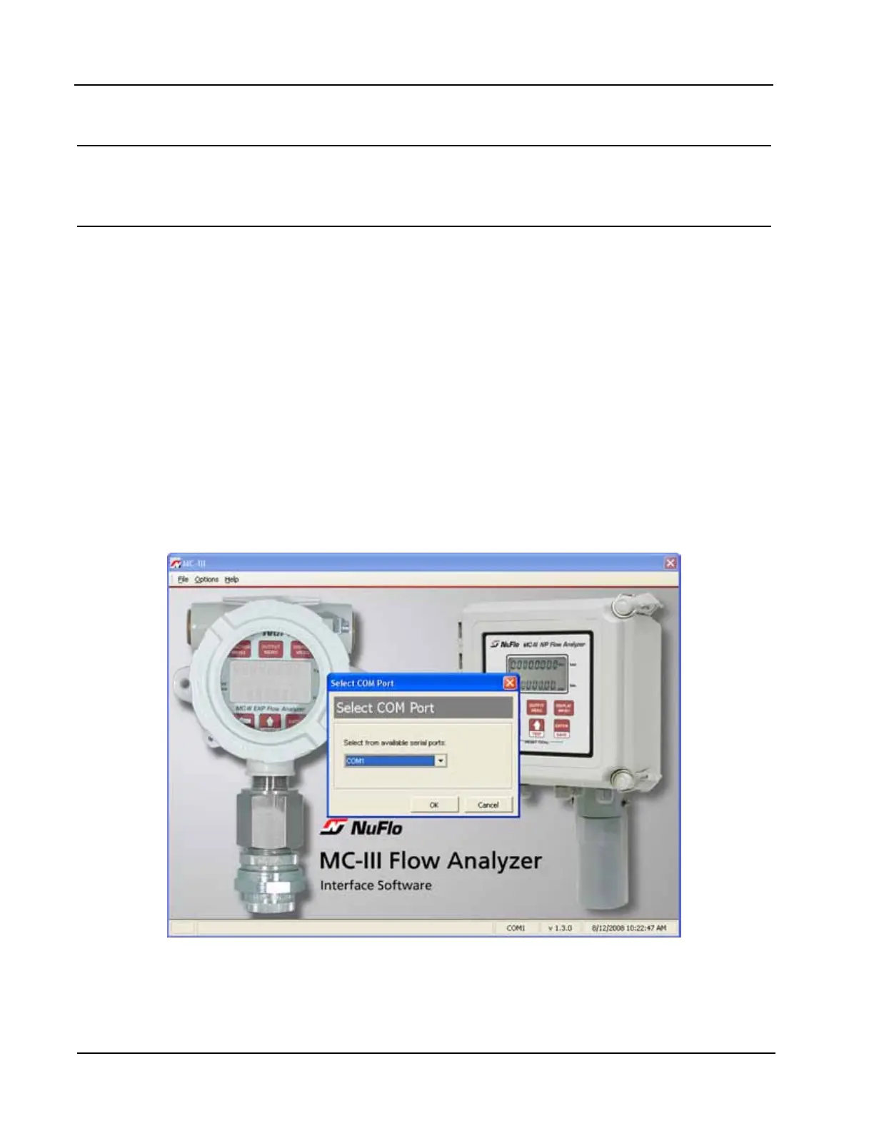 Once the software is installed, the program will automatically launch with the click of the NuFlo MC-III icon