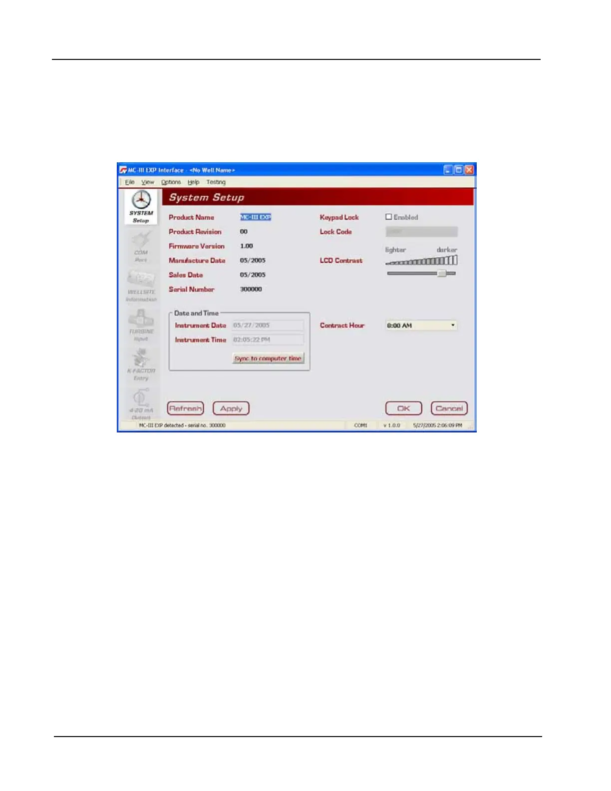with the instrument, the interface software prompts the user to synchronize the instrument time and date with