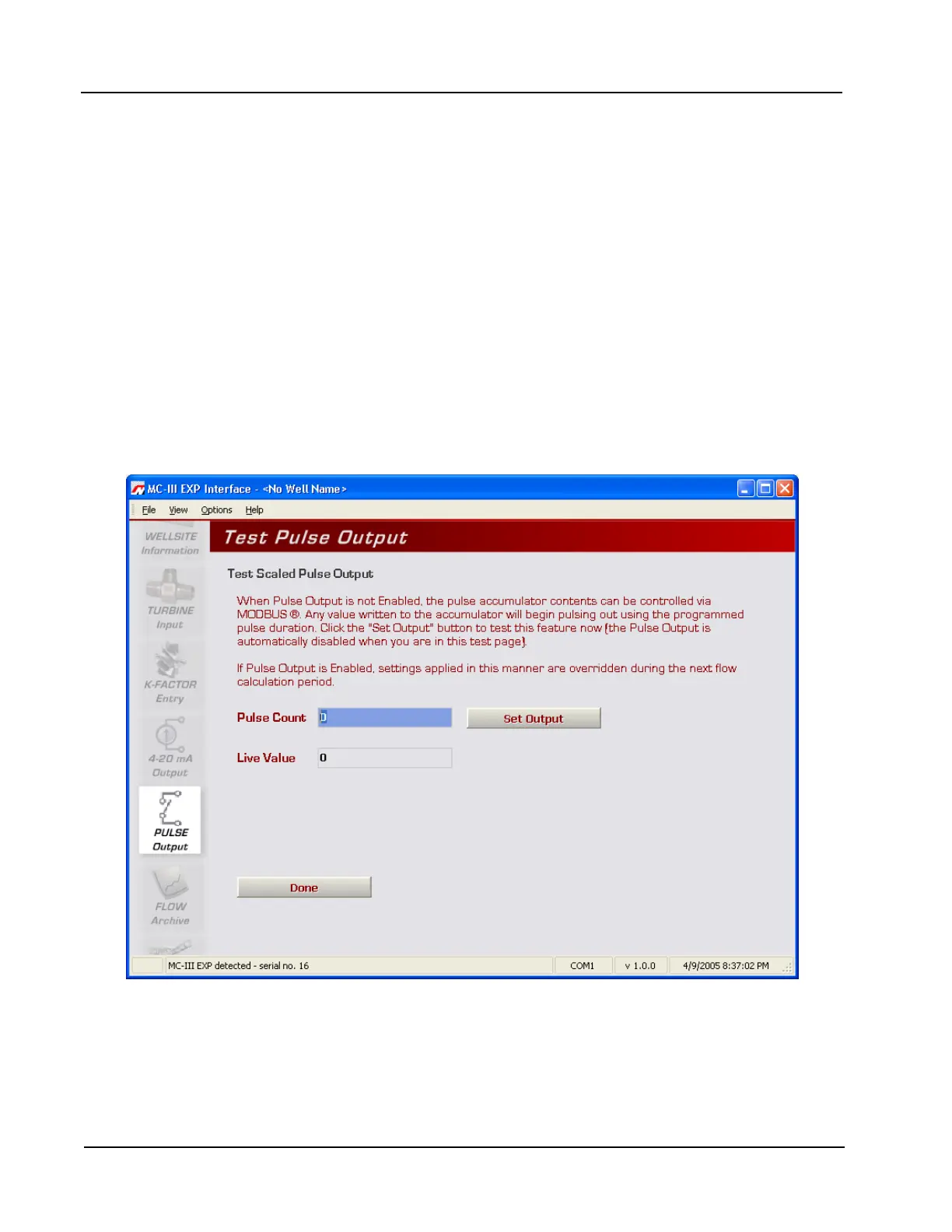 page will appear (Figure 4.33), and the Pulse Output option will be temporarily disabled.
