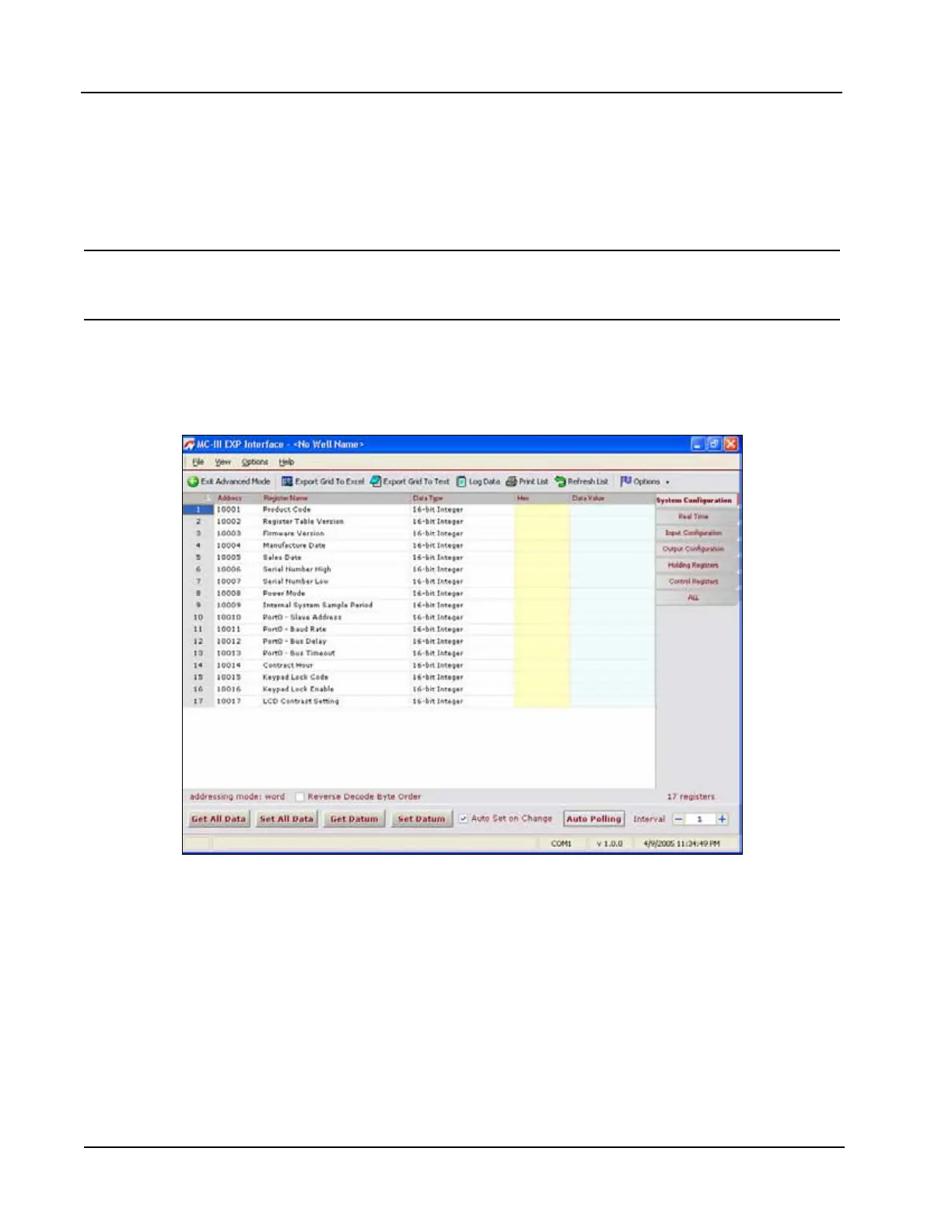 Data retrieved from the MC-III Panel Mount while in Advanced access mode can be logged to a le by