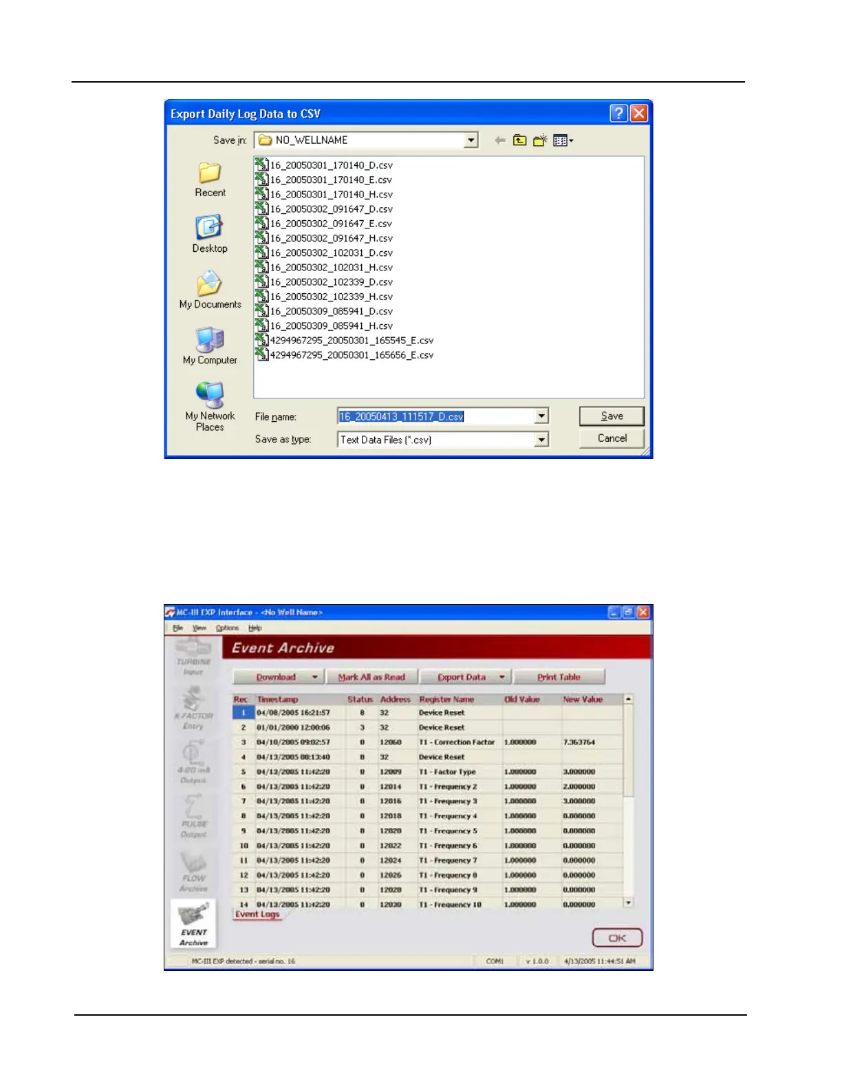 Figure 5.13—Default directory for exported log les