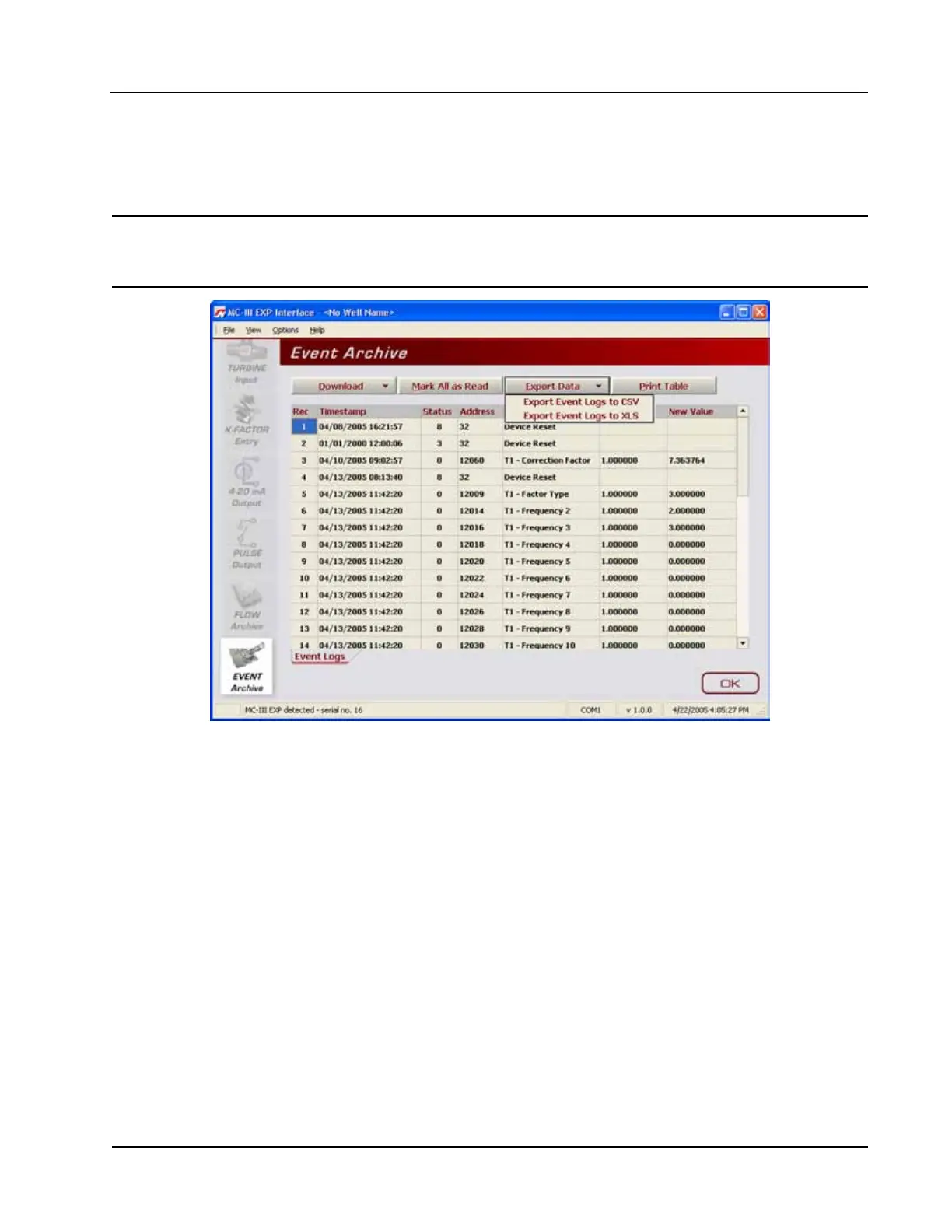 Figure 5.17—Dropdown menu for exporting log data