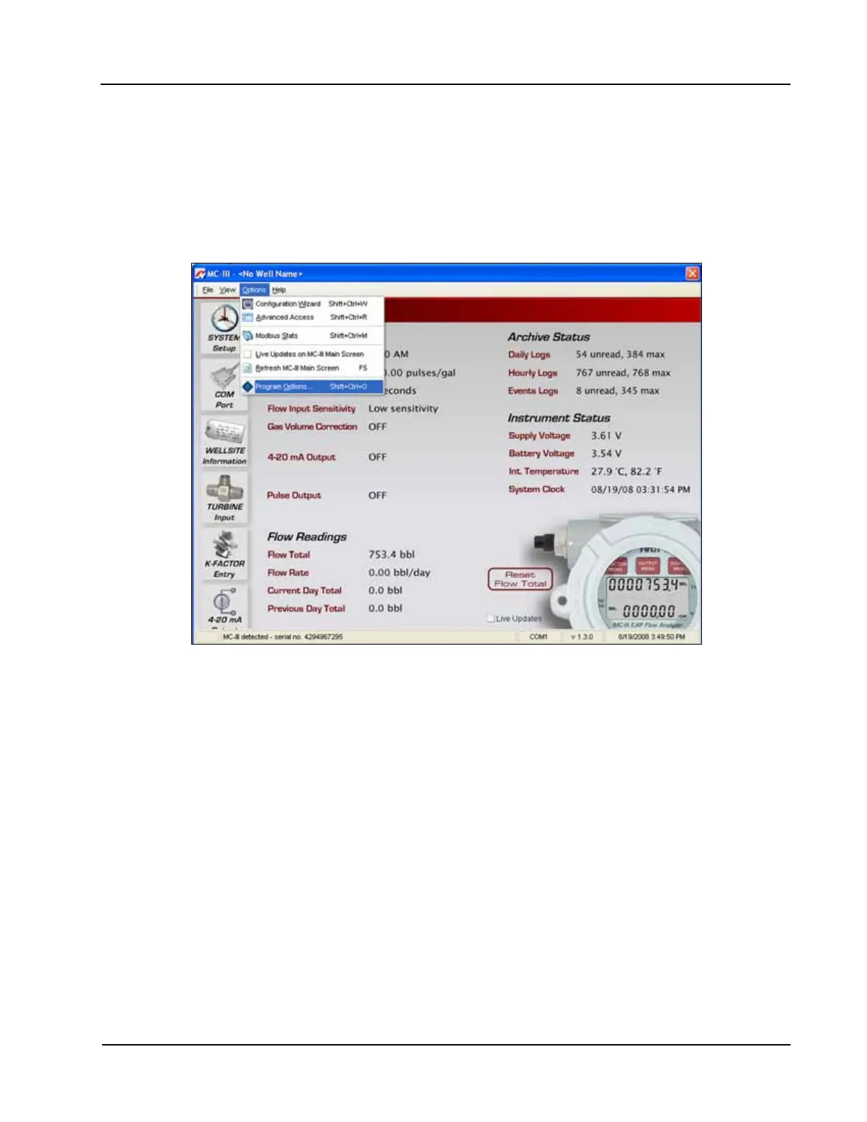 In addition to the standard conguration and ow log menus, the MC-III™ interface software includes a