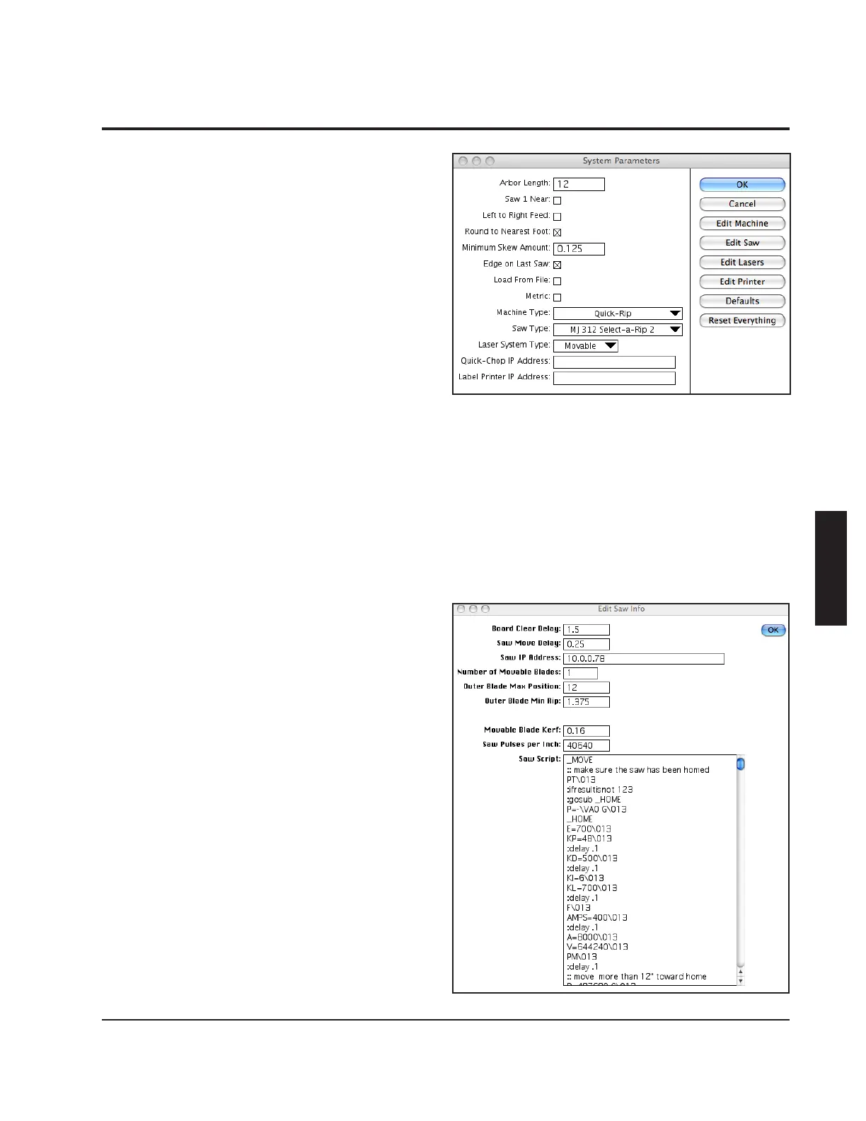 moving blade saws, the "Edit Saw" button