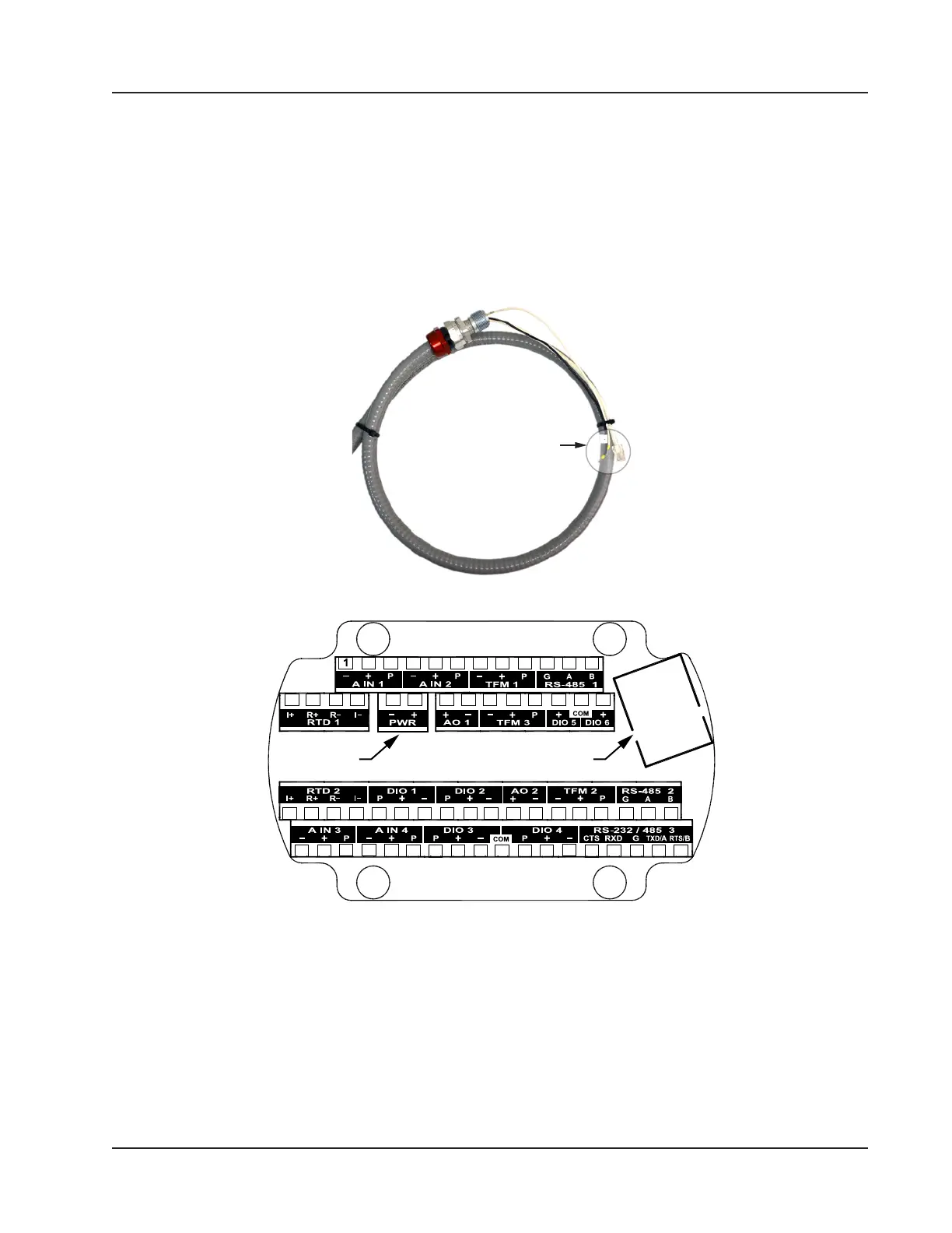 f. Thread the Ethernet and power wires shown in Figure 4.7 through the conduit opening in the Scanner 3100