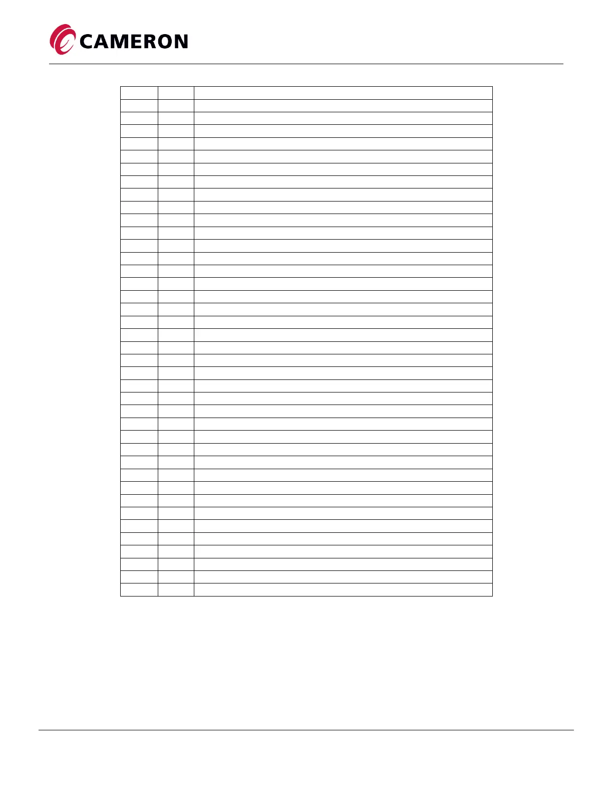 Table 1 – Parts List for Standard Gearless Valve
