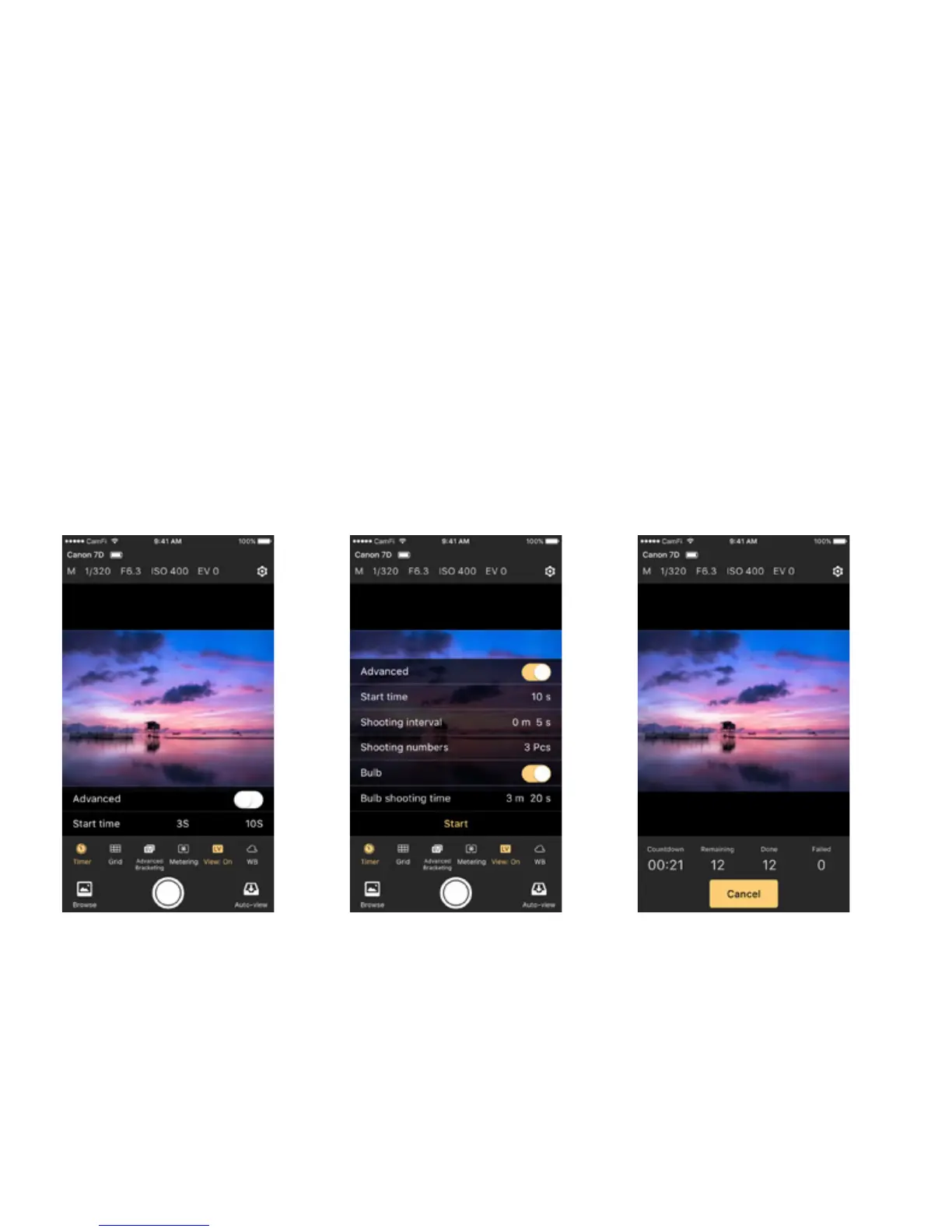 After setting, tap the Start button to begin capture.