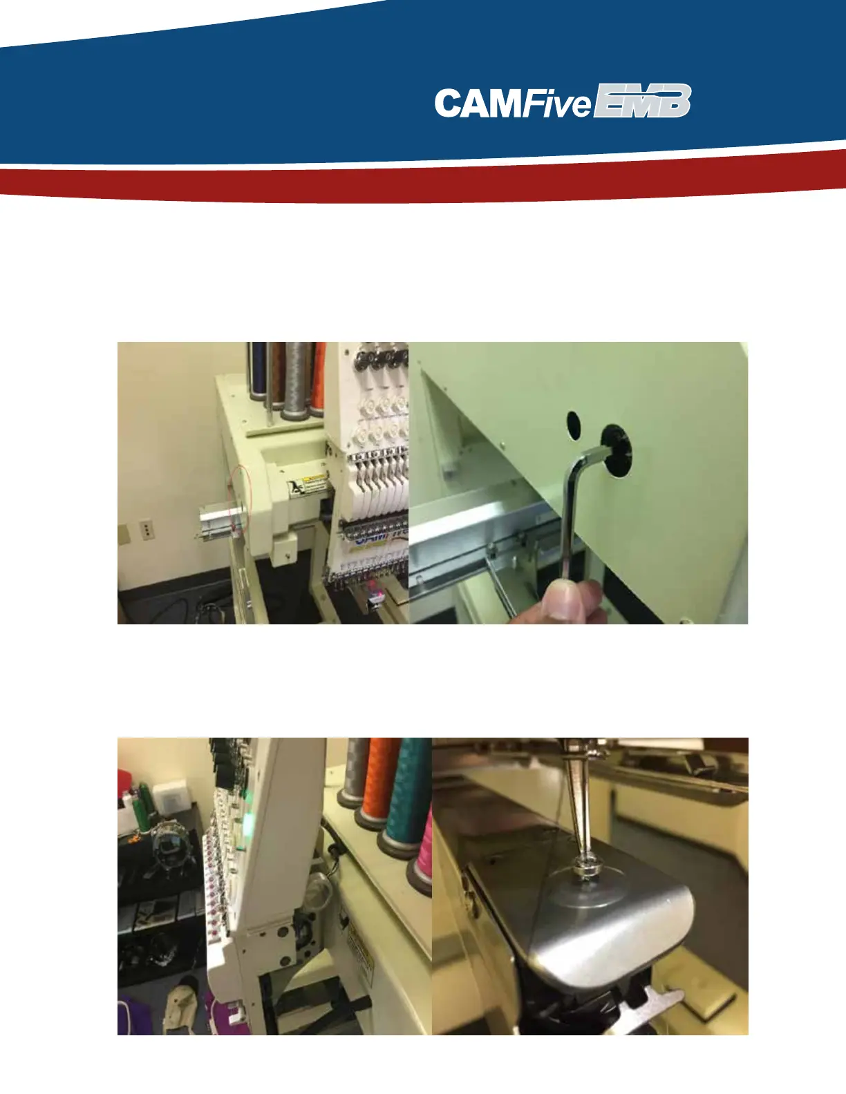 Utilizing an Allen key on the left side of the machine to manually bring the needle