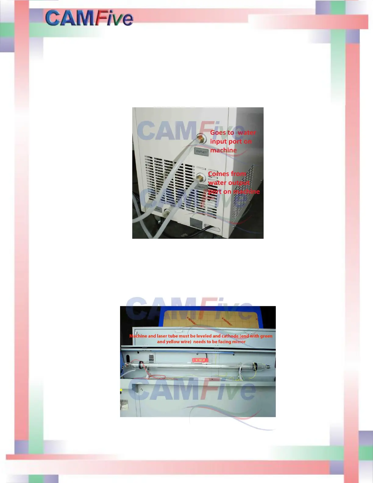 Once the laser tube has been set in place inside the cabinet the water hose connection