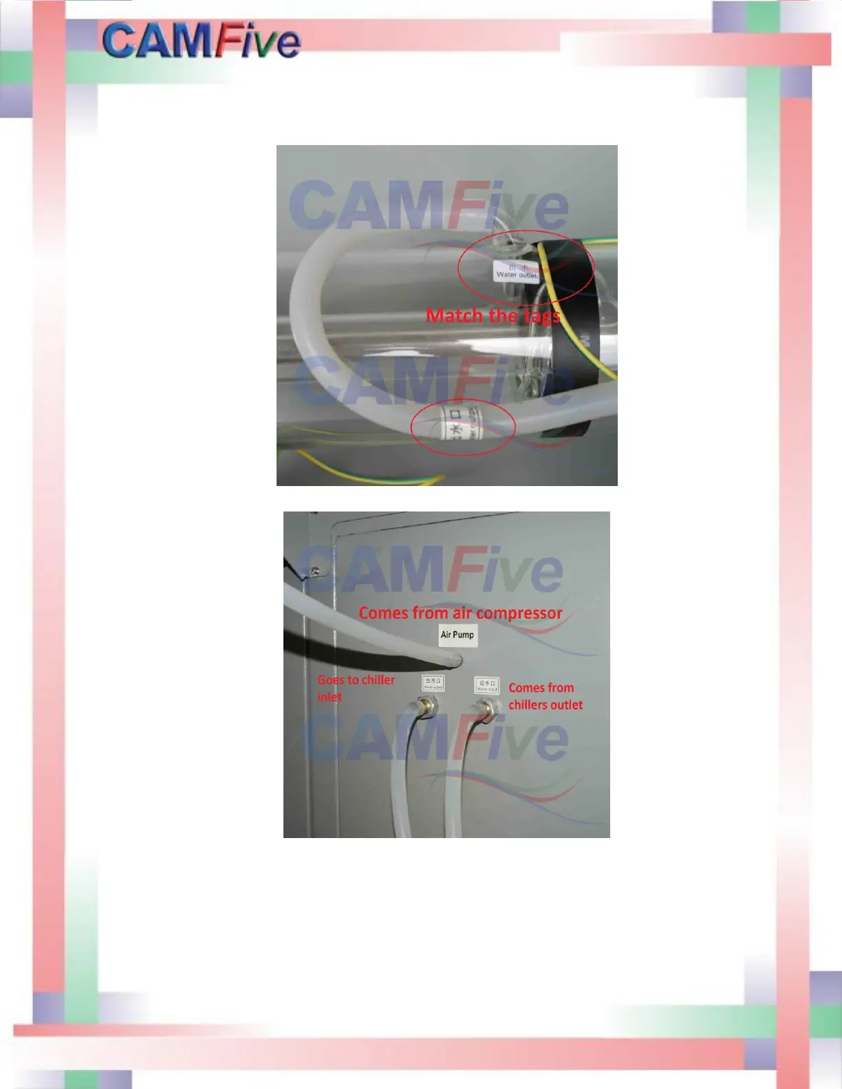 2. Connect the water hoses accordingly as marked. Then fill the chiller compartment with