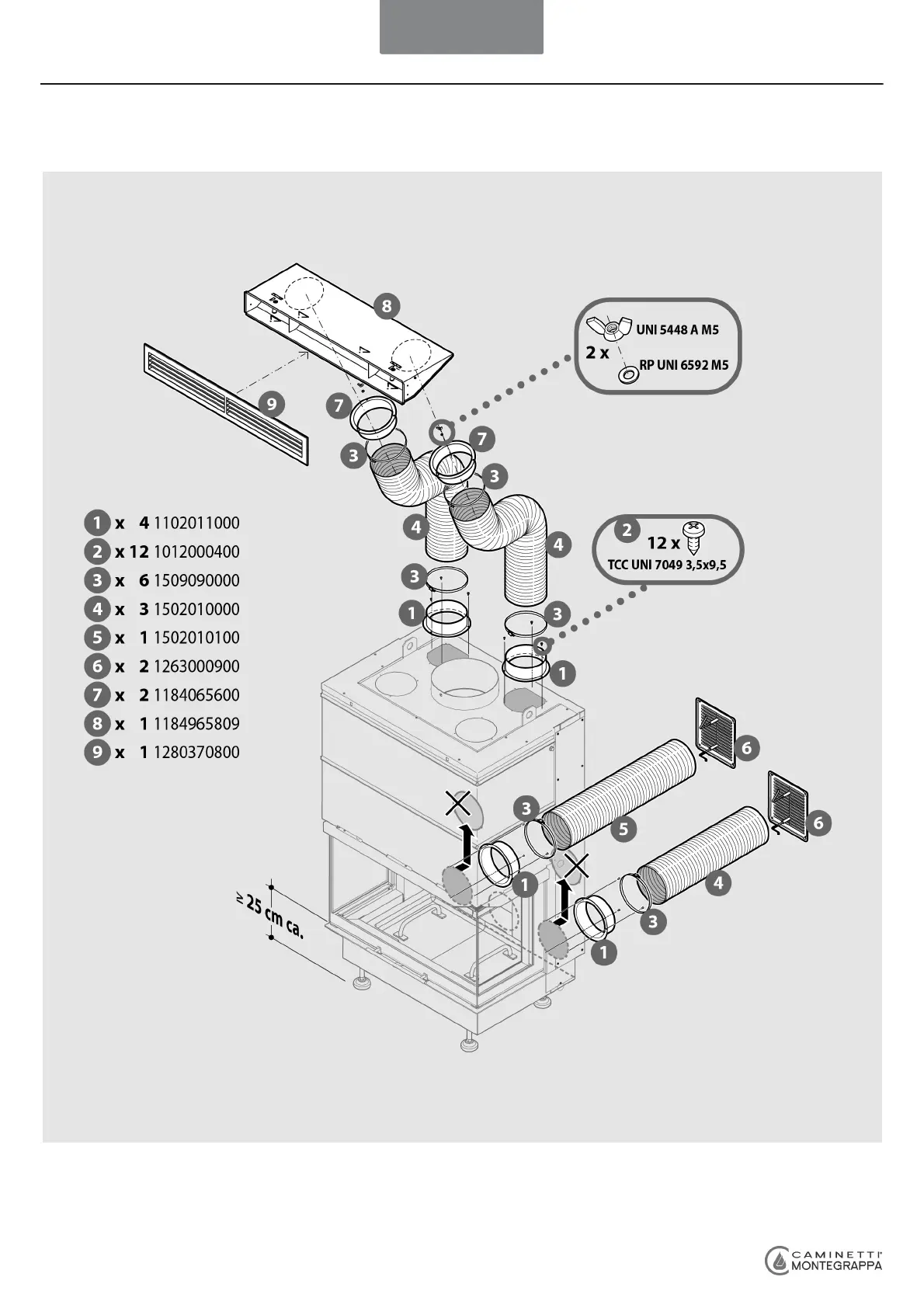 Caminetti Montegrappa TECH 3 - Natural Air Convection Channelling Kit
