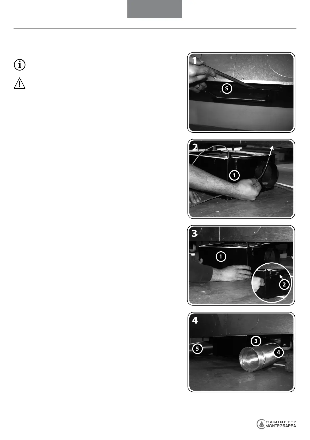 openings of the fan box and secure them with two pipe collars [3].