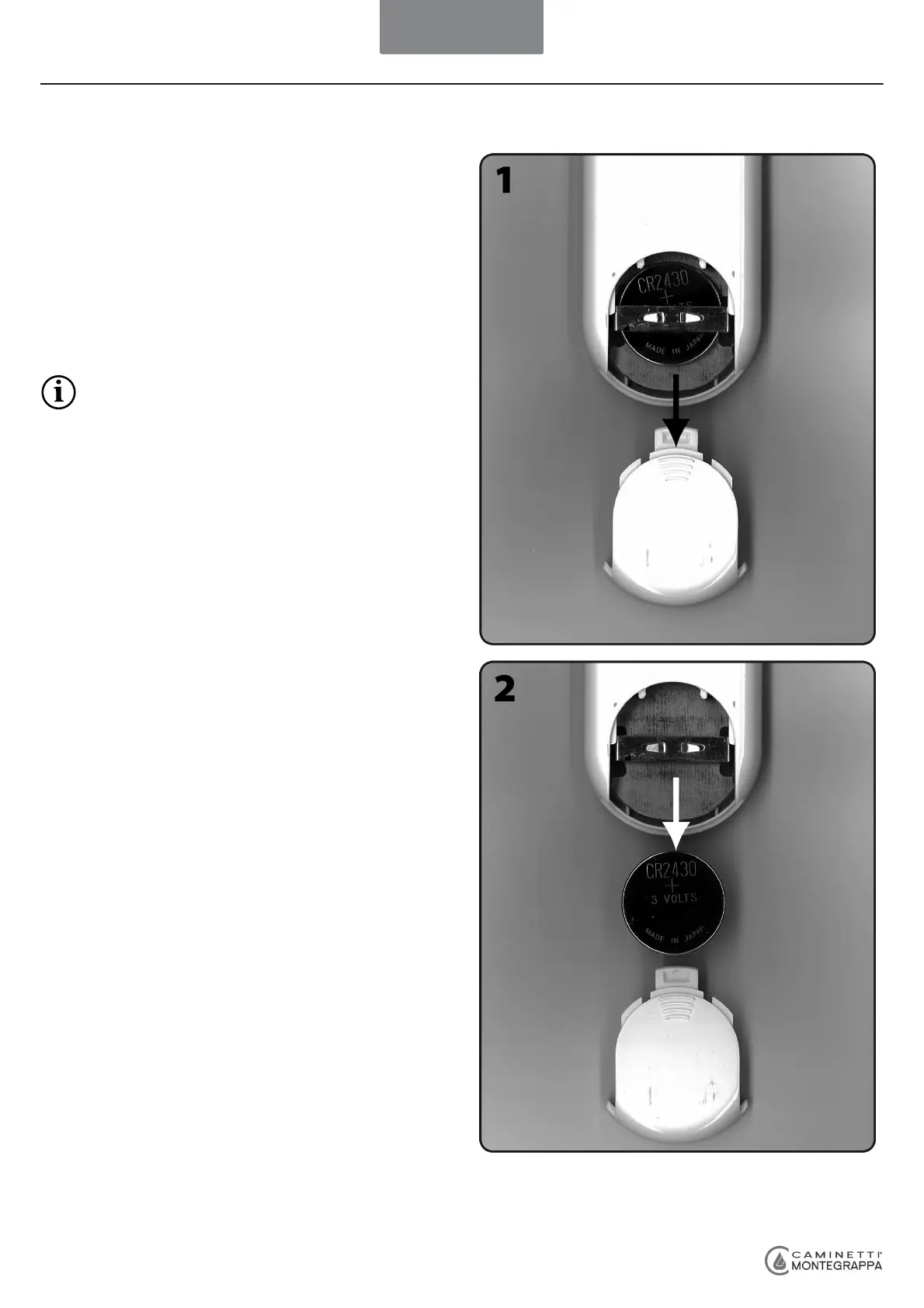 Place the new battery of the same type (CR2430 - 3 Volt)