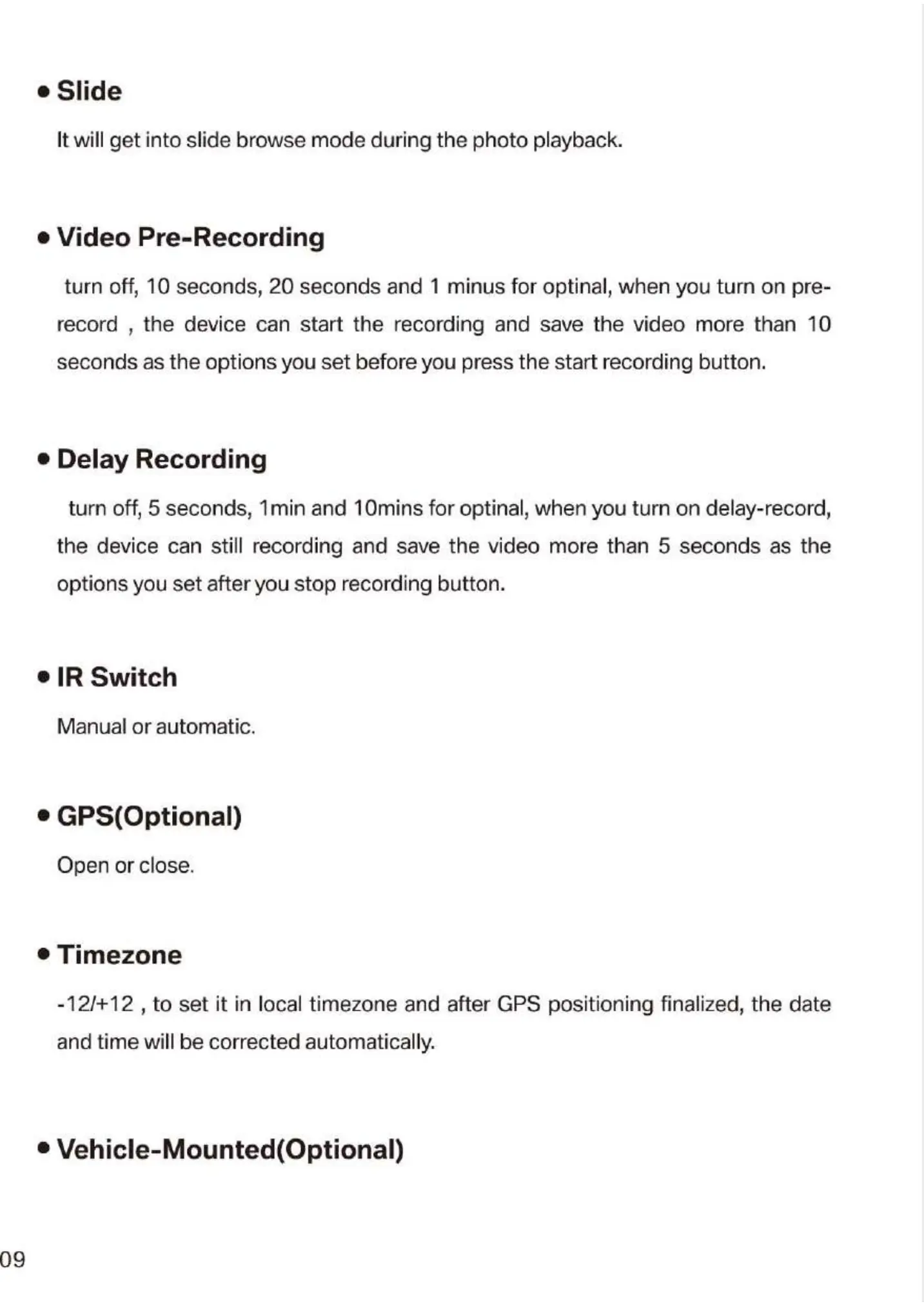 turn off, 5 seconds, Imin and 10mins for optinal, when you turn on delay-record,