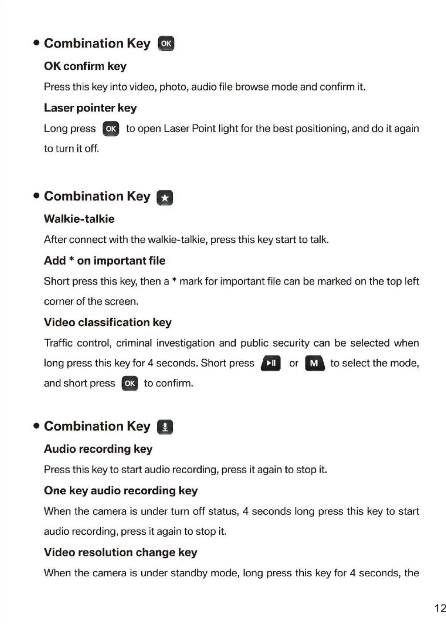 Press this key to start audio recording, press it again to stop it.