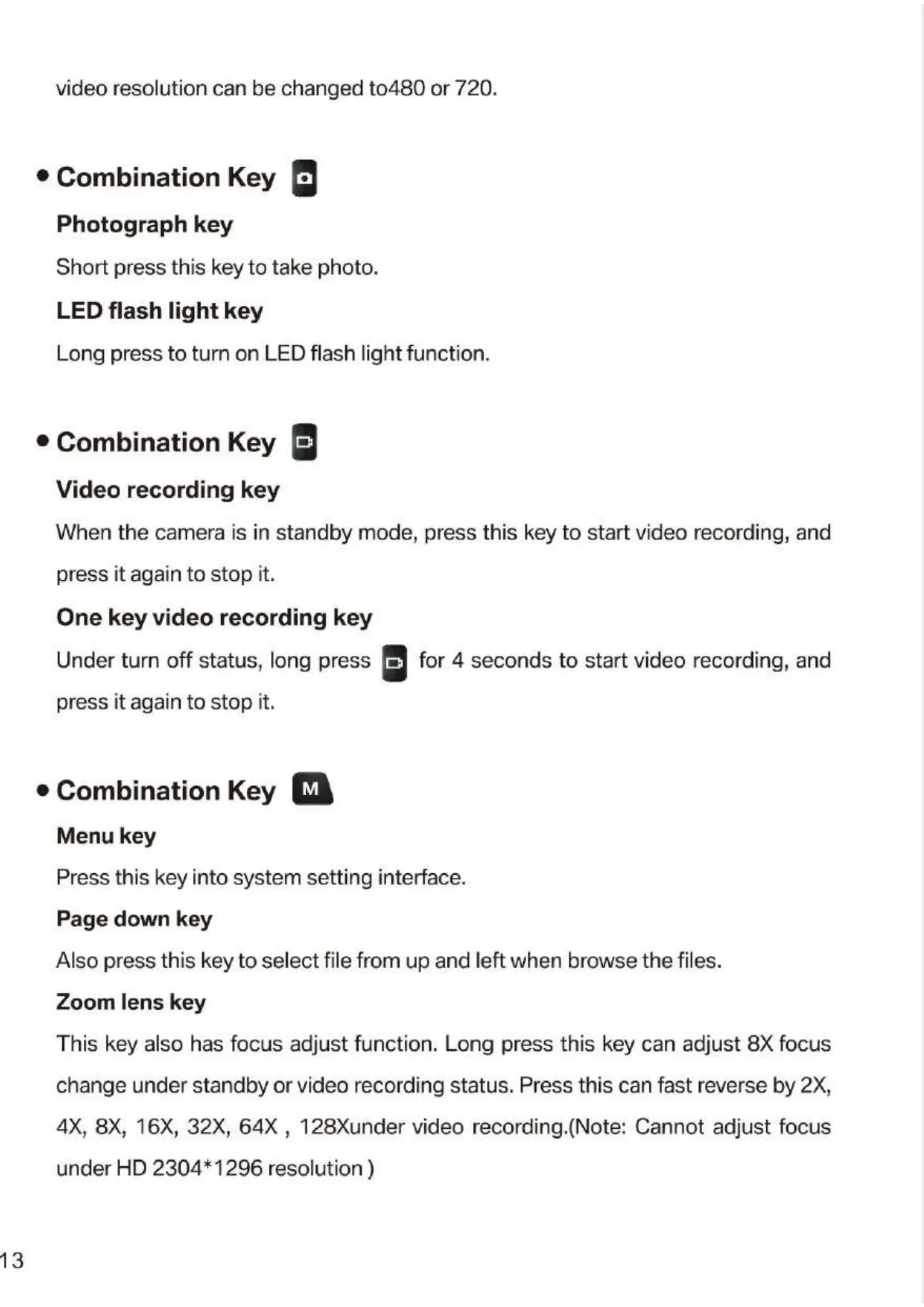 This key also has focus adjust function. Long press this key can adjust 8X focus