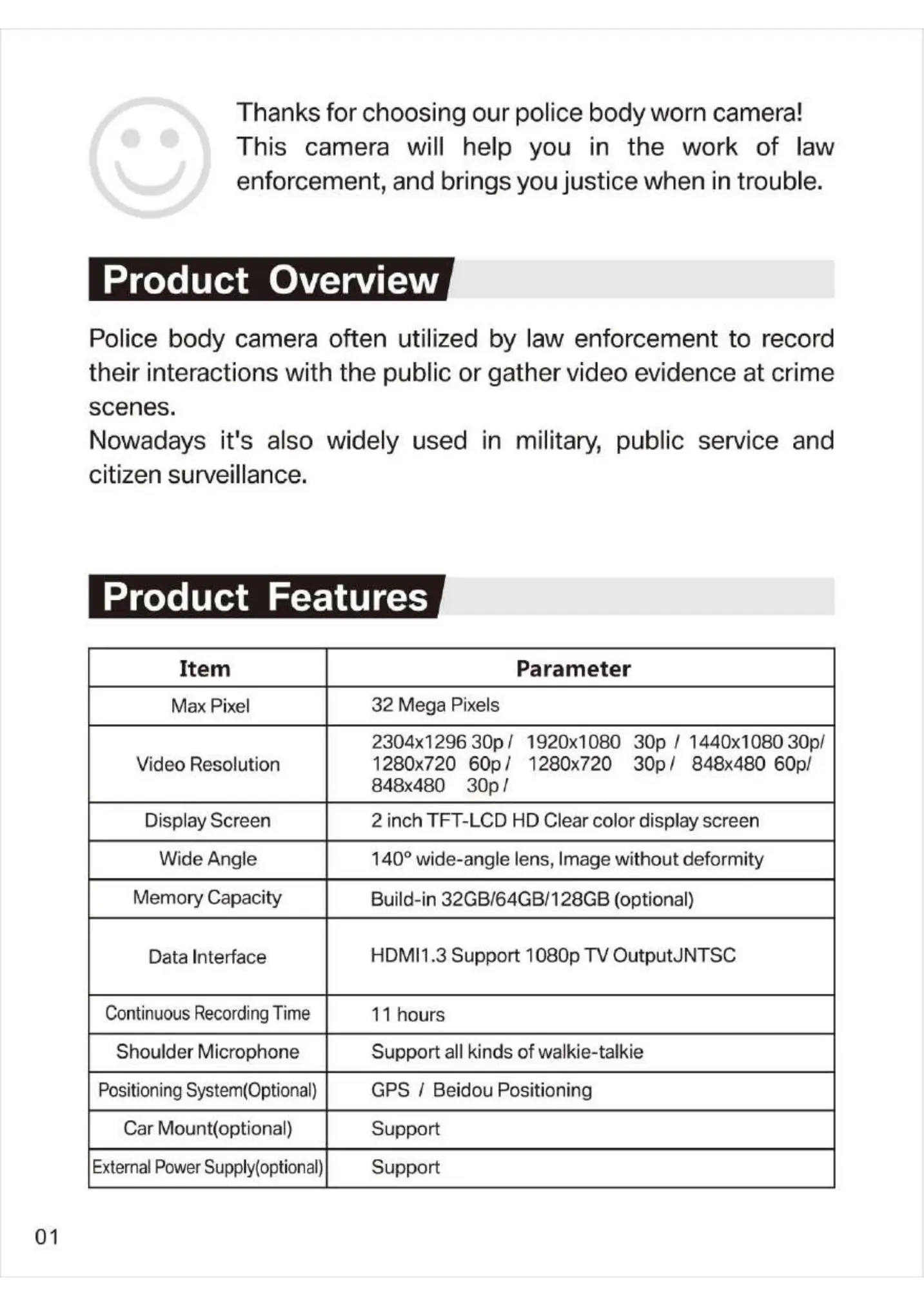 Thanks for choosing our police body worn camera!