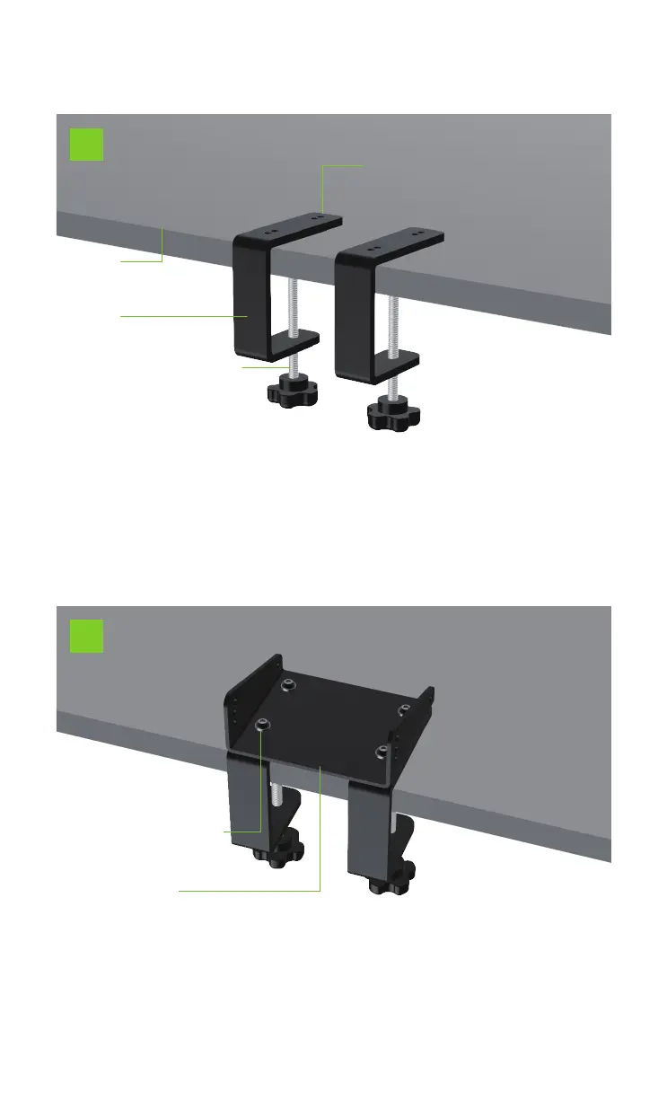 2. Fix the lower plate of the desktop bracket and the desktop