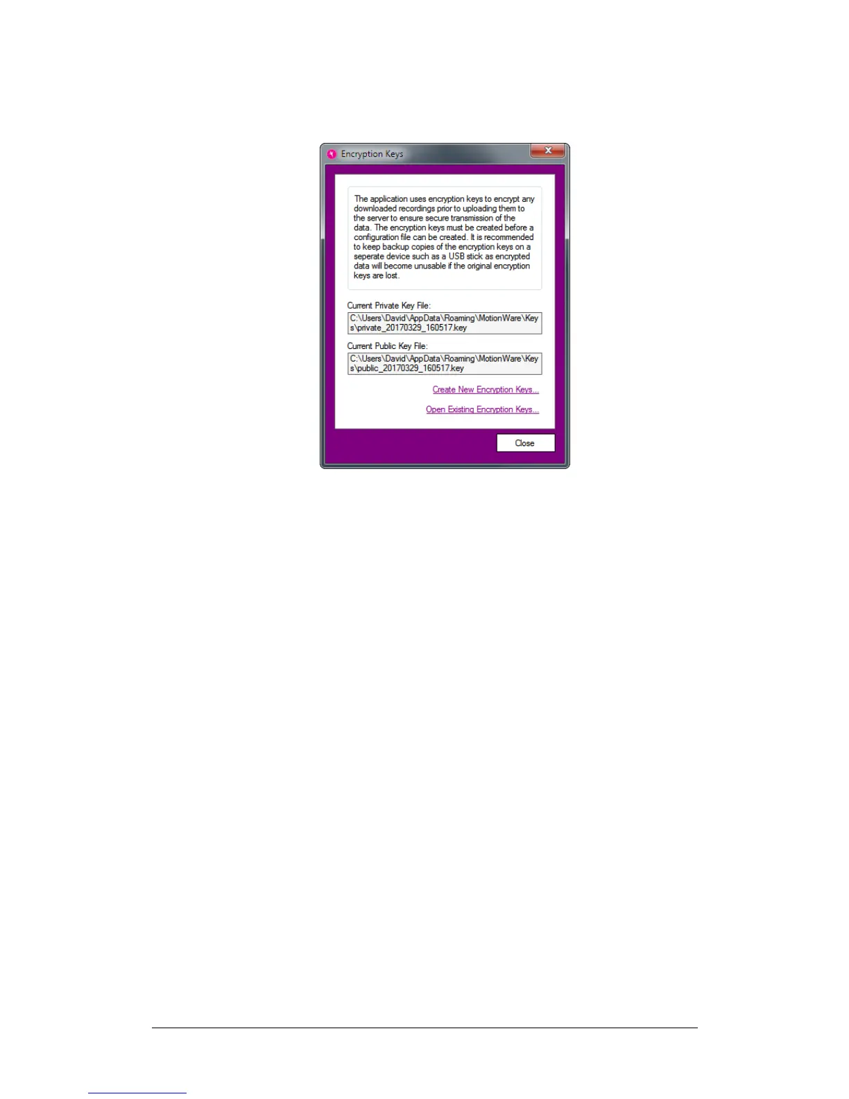Close the Encryption Keys window after creating your new