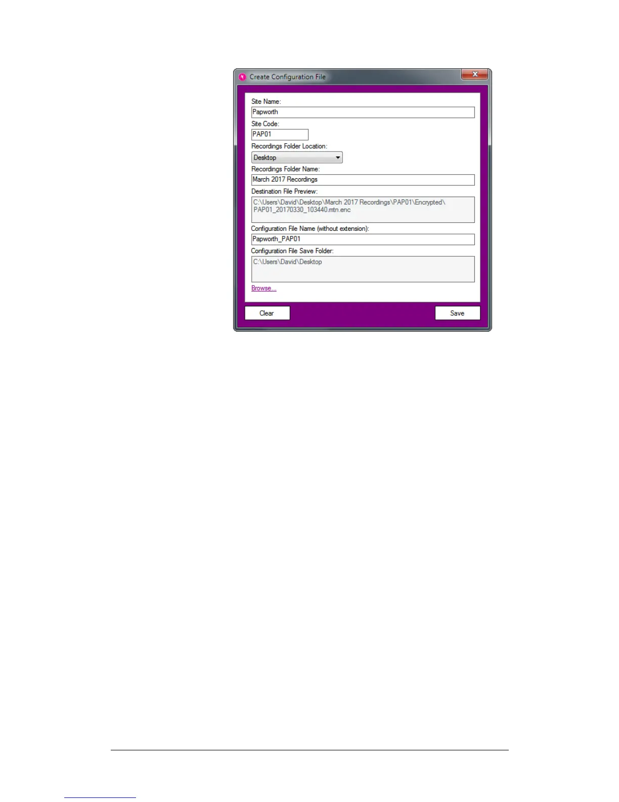 Configuration File Save Folder: click the Browse… link