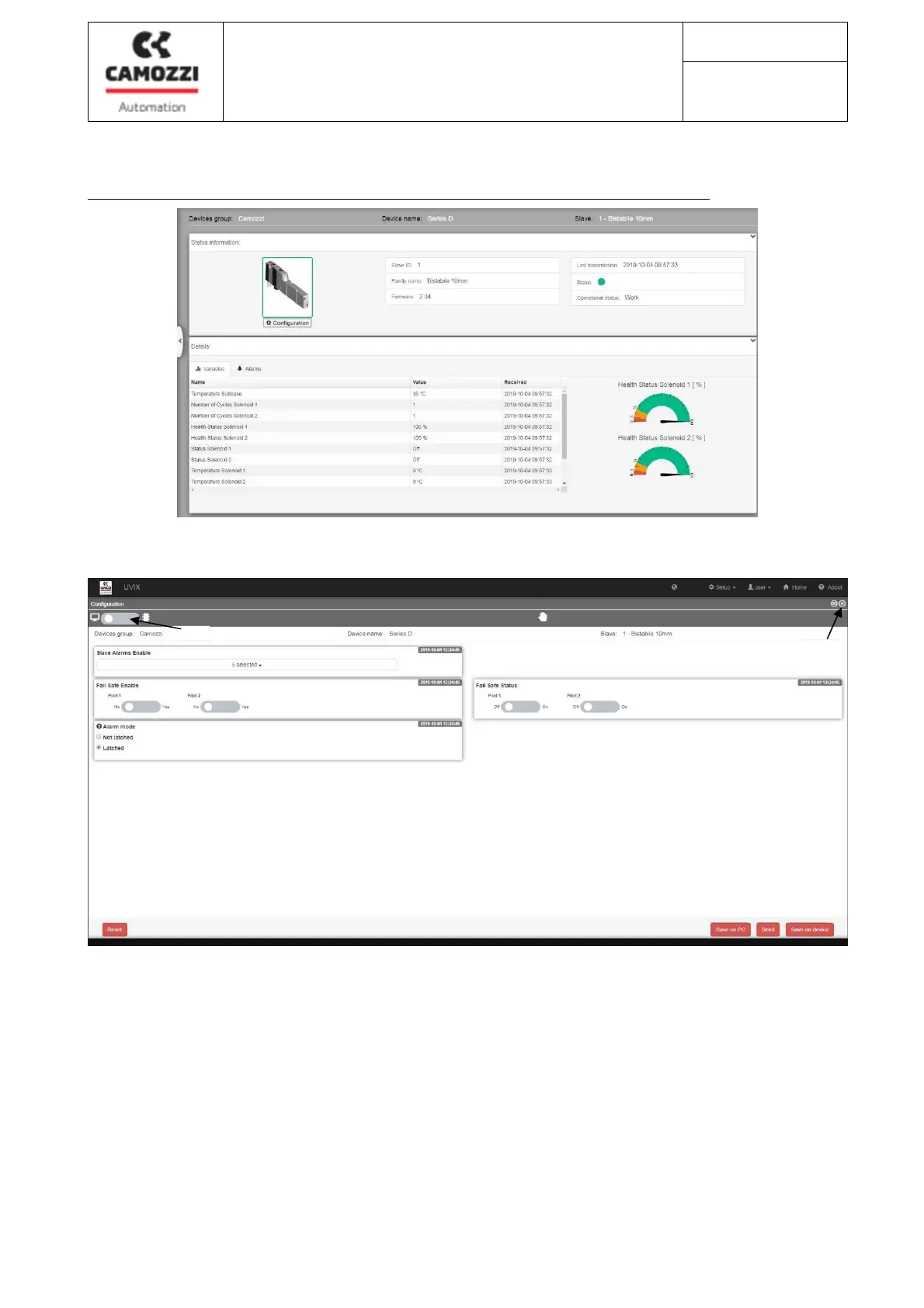 c. Save the parameter configuration in CamozziUVIX (21)