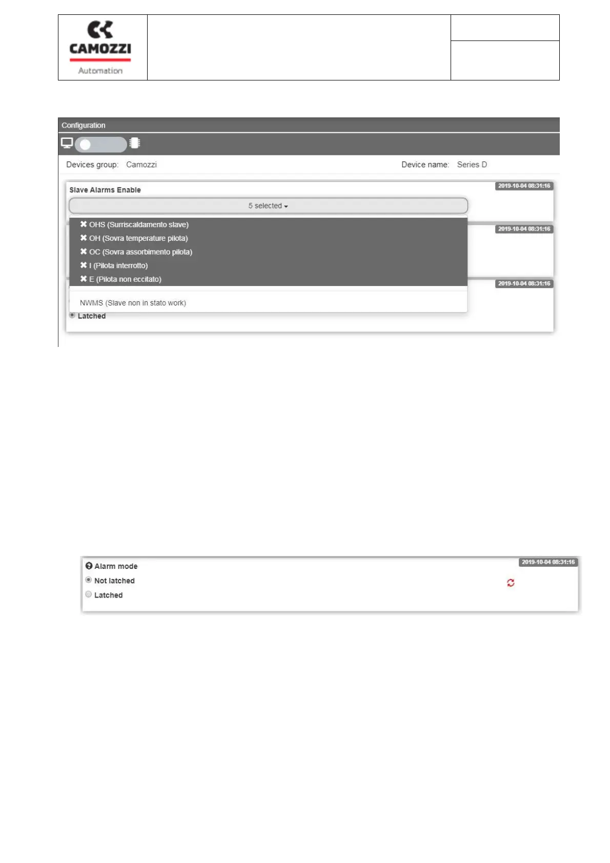 By clicking on the drop-down menu (25) it is possible to enable or disable the single alarm for the sub-base in