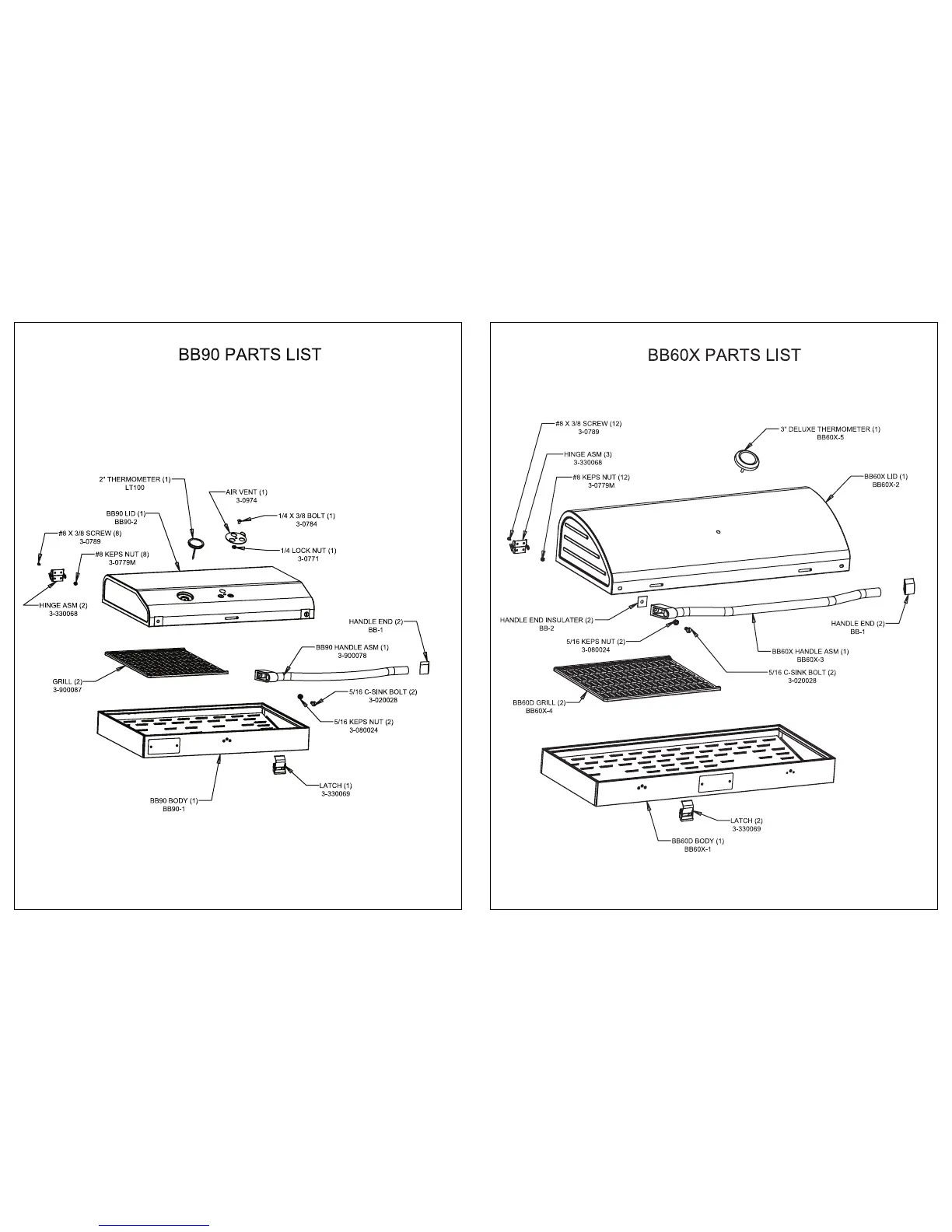 Camp Chef BB-90L - BB90 Parts List and Diagram; BB60 X Parts List and Diagram