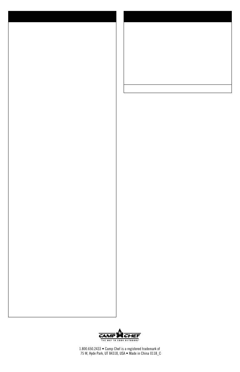 www.CampChef.com | 1.800.650.2433 • Camp Chef is a registered trademark of Logan Outdoor Products