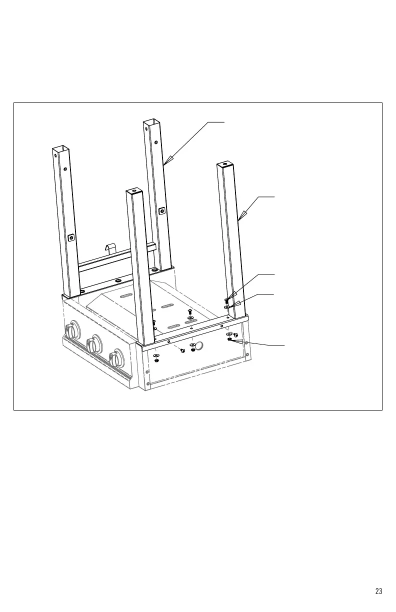 4. Attacher les pieds sur le fond du barbecue comme illustré, à l’aide de la quincaillerie indiquée à la Figure 1. Serrer toute la