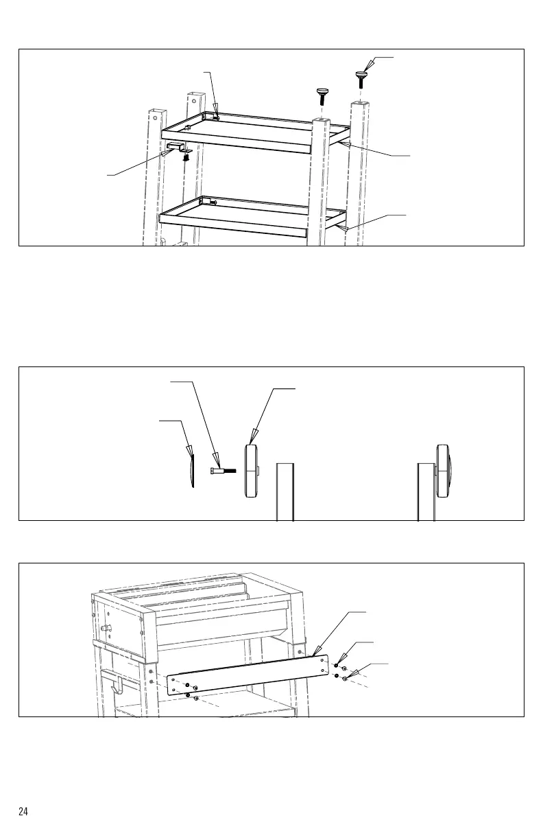 6. Monter l’étagère du bas comme indiqué à la Figure 2. Serrer toute la quincaillerie. Remarque : l’étagère du bas contient des