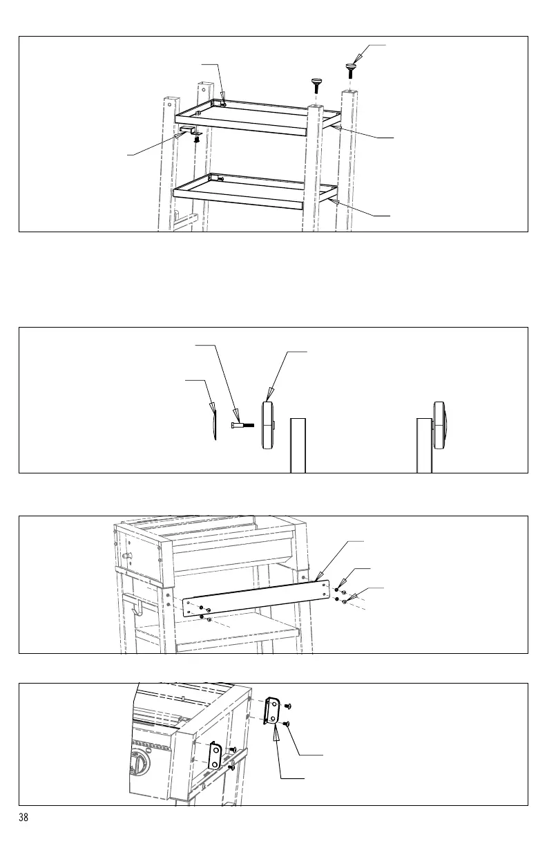 6. Instale el estante inferior como se muestra en la Figura 2. Apriete todos los herrajes. Nota: estante inferior tiene agujeros extra