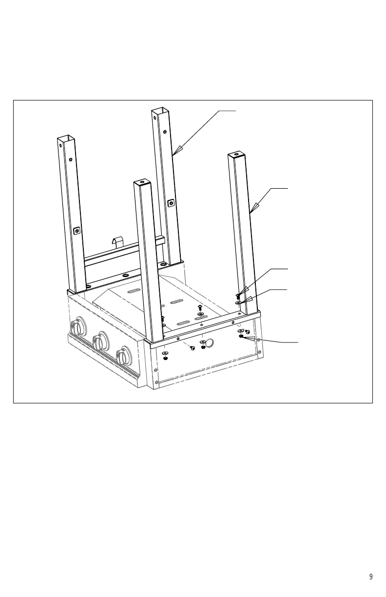 4. Assemble the legs to the bottom of the grill as shown using the hardware indicated in Figure 1. Tighten all hardware. (Note: